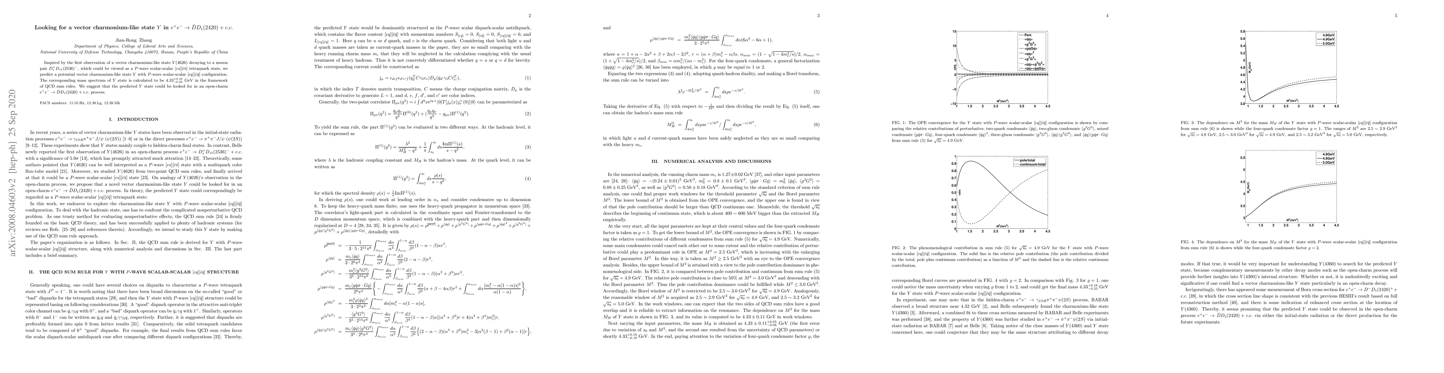 This paper predicts a potential vector charmonium-like state $Y$ with a $P$-wave scalar-scalar $[cq][\bar{c}\bar{q}]$ configuration, suggesting it could be found in the $e^{+}e^{-}\rightarrow\bar{D}D_{1}(2420)+c.c.$ process with a calculated mass of $4.33^{+0.16}_{-0.23}$ GeV using QCD sum rules.