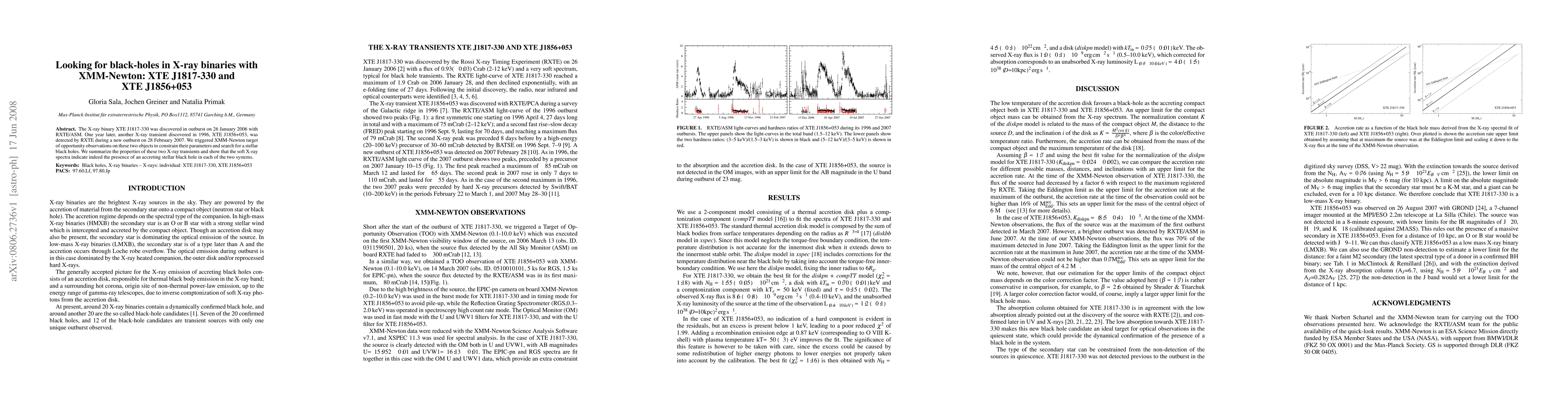 This paper reports XMM-Newton observations of the X-ray binaries XTE J1817-330 and XTE J1856+053, revealing their outbursts and confirming the presence of accreting stellar black holes in both systems based on their soft X-ray spectra.