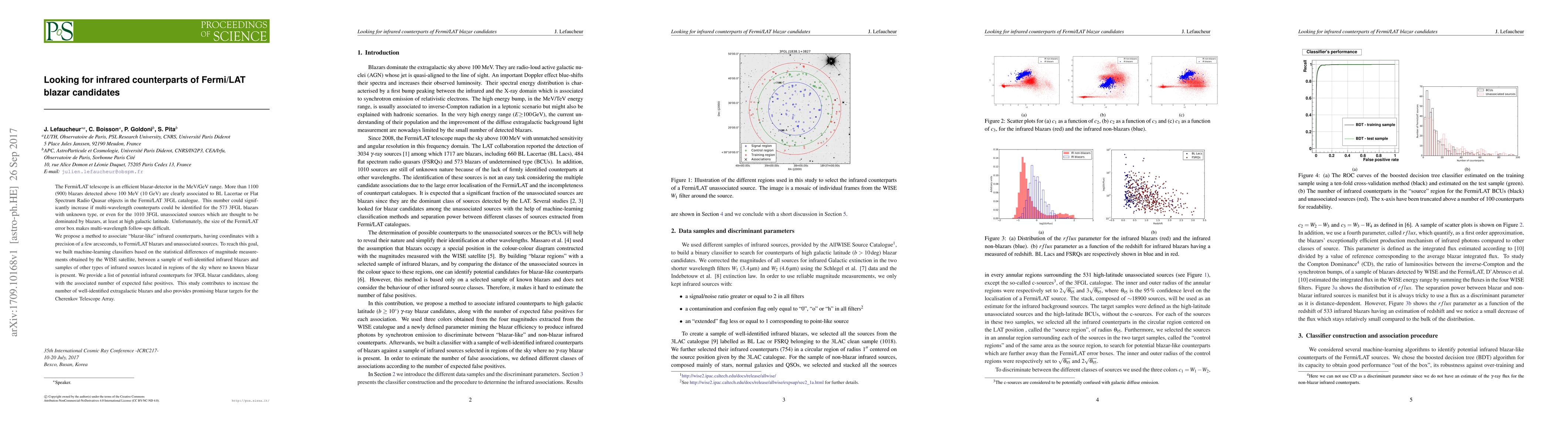 This paper proposes a method to identify infrared counterparts for Fermi/LAT blazar candidates using machine-learning classifiers based on WISE satellite data, aiming to increase the number of well-identified extragalactic blazars and provide targets for the Cherenkov Telescope Array. The study provides potential infrared matches for 3FGL blazar candidates with associated false positive rates.