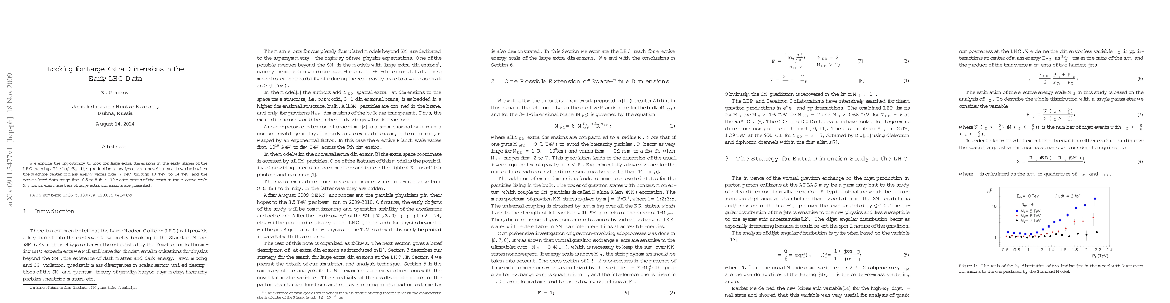 This paper investigates the potential to detect large extra dimensions using high-energy LHC data, focusing on high-E$_T$ dijet production and a novel kinematic variable across varying center-of-mass energies. The study estimates the effective scale $M_S$ reach for different numbers of extra dimensions.