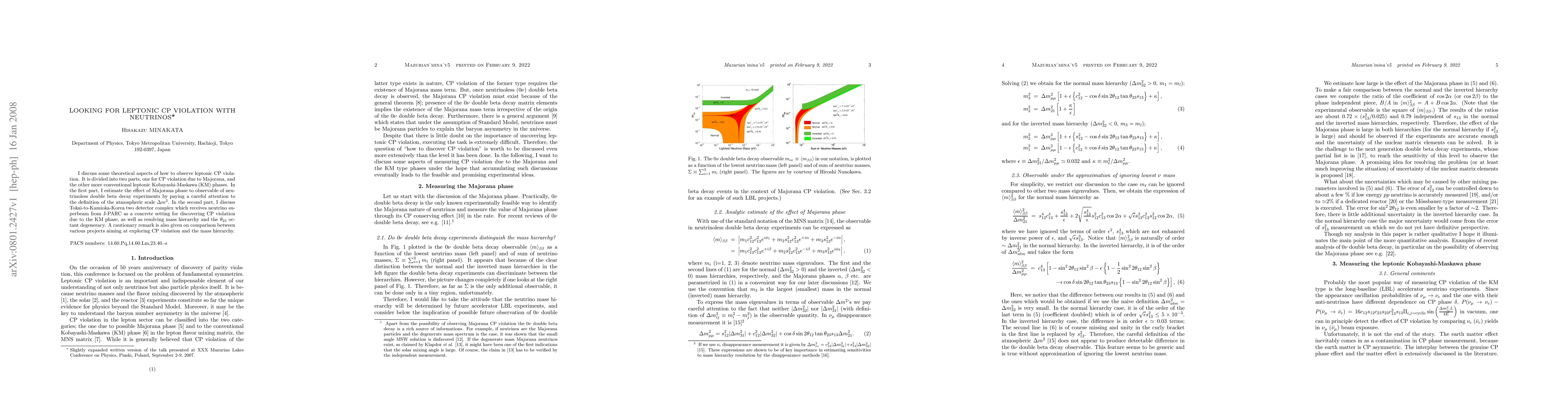 This paper explores theoretical methods for observing leptonic CP violation through both Majorana and Kobayashi-Maskawa phases. It examines the impact of Majorana phases on neutrinoless double beta decay and discusses the Tokai-to-Kamioka-Korea neutrino superbeam project for detecting CP violation, resolving mass hierarchy, and addressing the theta_{23} octant degeneracy.