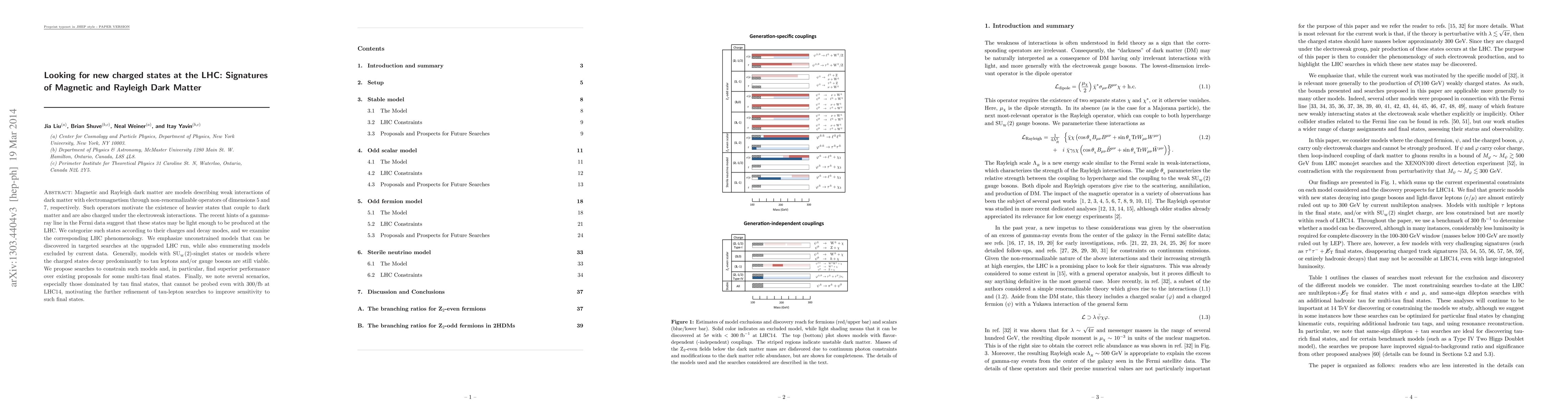 Magnetic and Rayleigh dark matter are models describing weak interactions of dark matter with electromagnetism through non-renormalizable operators of dimensions 5 and 7, respectively. Such operators motivate the existence of heavier states that couple to dark matter and are also charged under the electroweak interactions. The recent hints of a gamma-ray line in the Fermi data suggest that these states may be light enough to be produced at the LHC. We categorize such states according to their charges and decay modes, and we examine the corresponding LHC phenomenology. We emphasize unconstrained models that can be discovered in targeted searches at the upgraded LHC run, while also enumerating models excluded by current data. Generally, models with SU(2)-singlet states or models where the charged states decay predominantly to tau leptons and/or gauge bosons are still viable. We propose searches to constrain such models and, in particular, find superior performance over existing proposals for multi-tau analyses. Finally, we note several scenarios, especially those dominated by tau final states, that cannot be probed even with 300/fb at LHC14, motivating the further refinement of tau lepton searches to improve sensitivity to such final states.