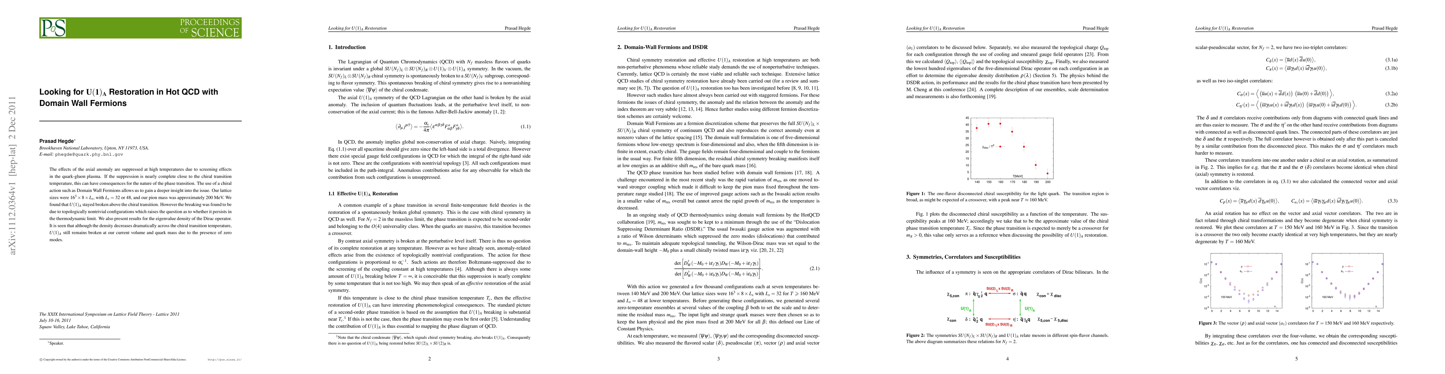 This study explores the restoration of $U(1)_A$ symmetry in hot QCD using Domain Wall Fermions, finding that $U(1)_A$ remains broken above the chiral transition, likely due to topologically nontrivial configurations and the presence of zero modes, despite a significant decrease in the Dirac operator's eigenvalue density. The results suggest further investigation into the persistence of $U(1)_A$ breaking in the thermodynamic limit.