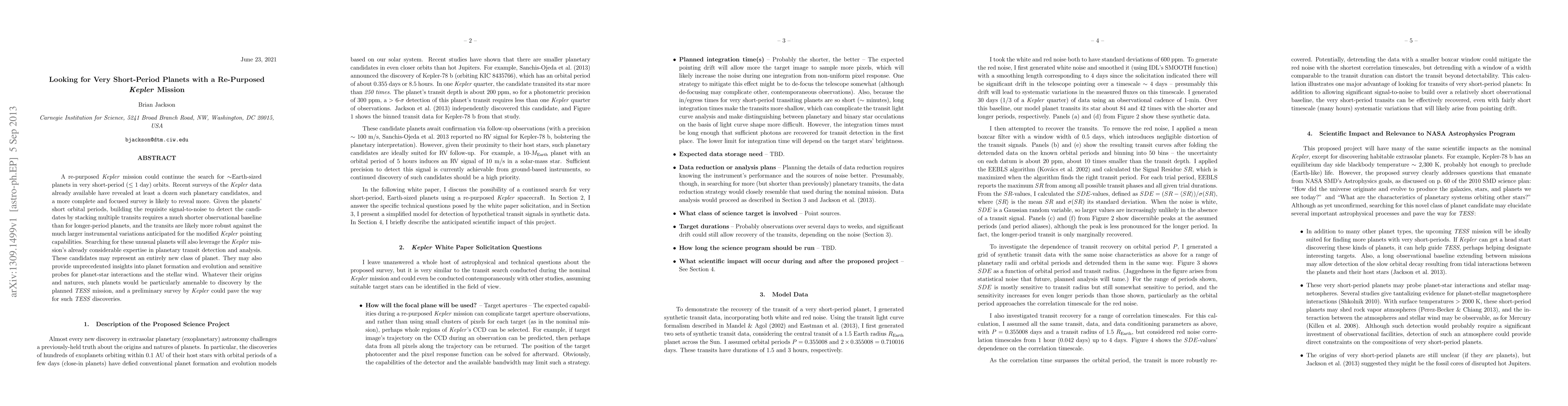 A re-purposed Kepler mission could continue the search for nearly Earth-sized planets in very short-period (< 1 day) orbits. Recent surveys of the Kepler data already available have revealed at least a dozen such planetary candidates, and a more complete and focused survey is likely to reveal more. Given the planets' short orbital periods, building the requisite signal-to-noise to detect the candidates by stacking multiple transits requires a much shorter observational baseline than for longer-period planets, and the transits are likely more robust against the much larger instrumental variations anticipated for the modified Kepler pointing capabilities. Searching for these unusual planets will also leverage the Kepler mission's already considerable expertise in planetary transit detection and analysis. These candidates may represent an entirely new class of planet. They may also provide unprecedented insights into planet formation and evolution and sensitive probes for planet-star interactions and the stellar wind. Whatever their origins and natures, such planets would be particularly amenable to discovery by the planned TESS mission, and a preliminary survey by Kepler could pave the way for such TESS discoveries.