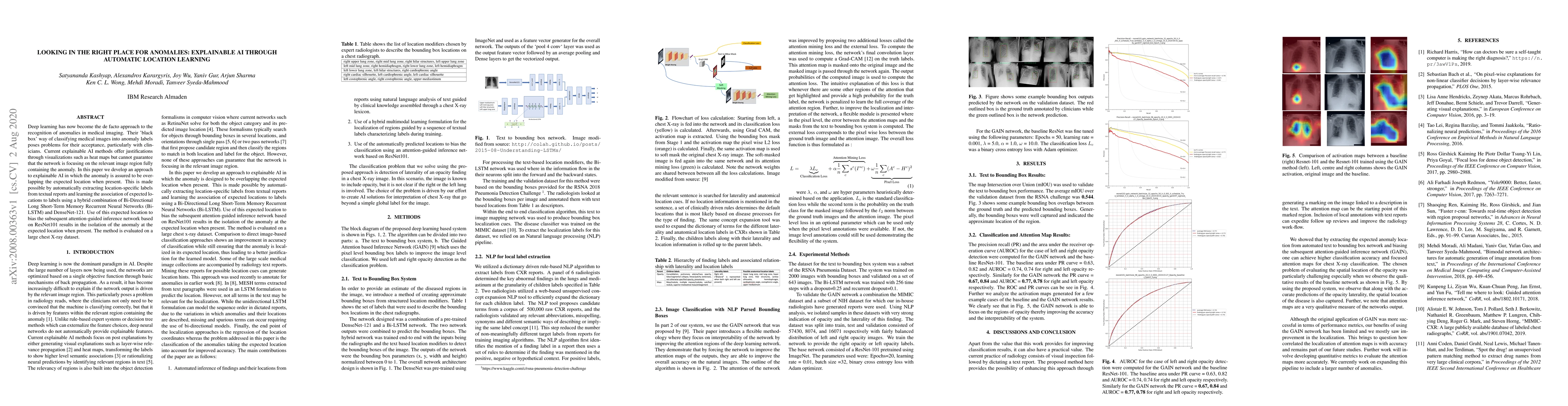 This paper presents an explainable AI method for anomaly detection in medical imaging, ensuring the anomaly is located in the expected region. It achieves this by automatically learning location-specific labels from textual reports using Bi-LSTM and DenseNet-121, then guiding a ResNet101 network to focus on these locations, effectively isolating anomalies. The approach was tested on a large chest X-ray dataset.