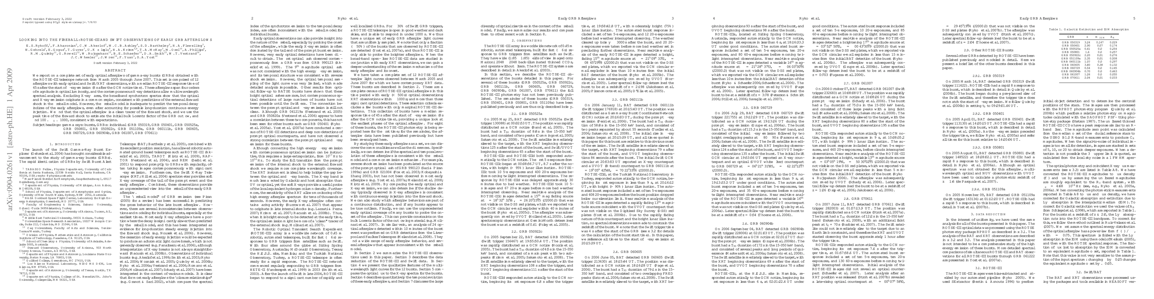 June 2007. This set is comprised of 12 afterglows with early optical and