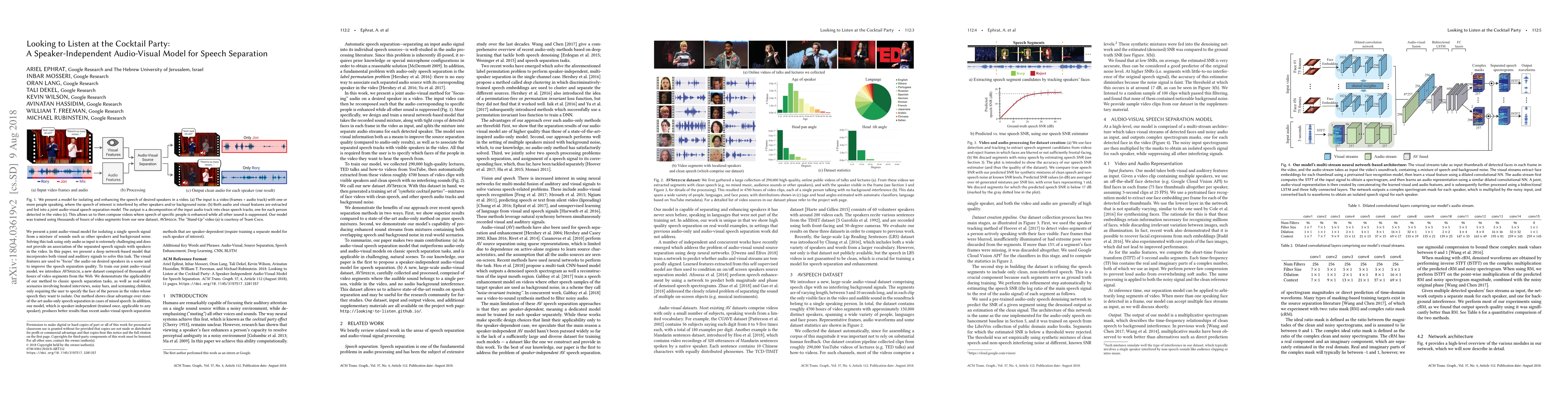 This paper introduces a speaker-independent audio-visual model for isolating speech signals from mixed audio-visual inputs, leveraging visual cues to enhance separation quality. The proposed deep network model outperforms state-of-the-art audio-only methods and is trained on a new dataset, AVSpeech, demonstrating effectiveness in various real-world scenarios.