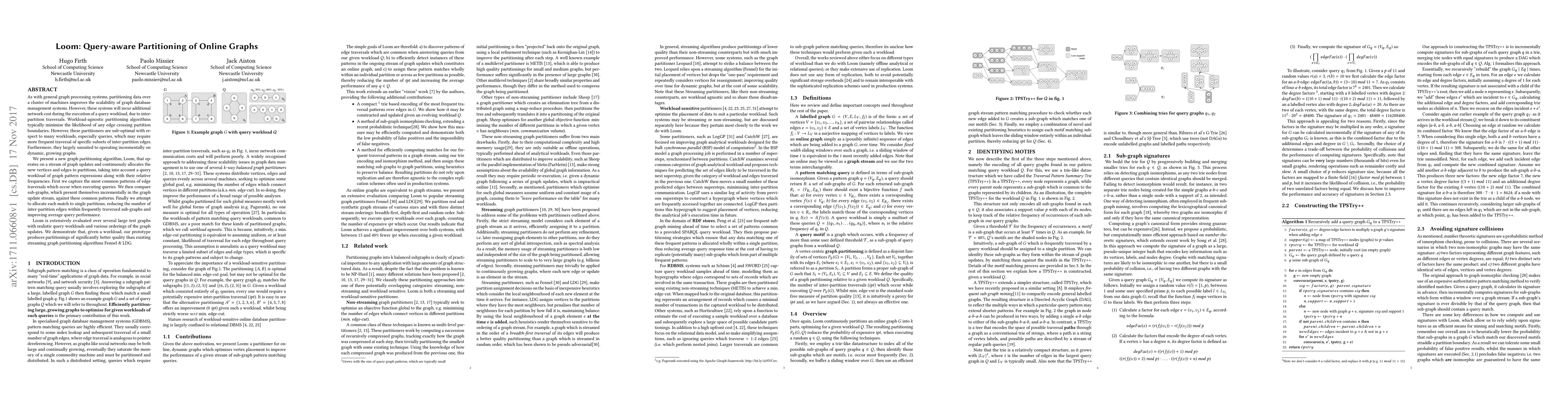 Loom presents a query-aware partitioning algorithm for online graphs, utilizing a sliding window approach and a trie-like data structure (TPSTry++) to identify and match motifs efficiently.