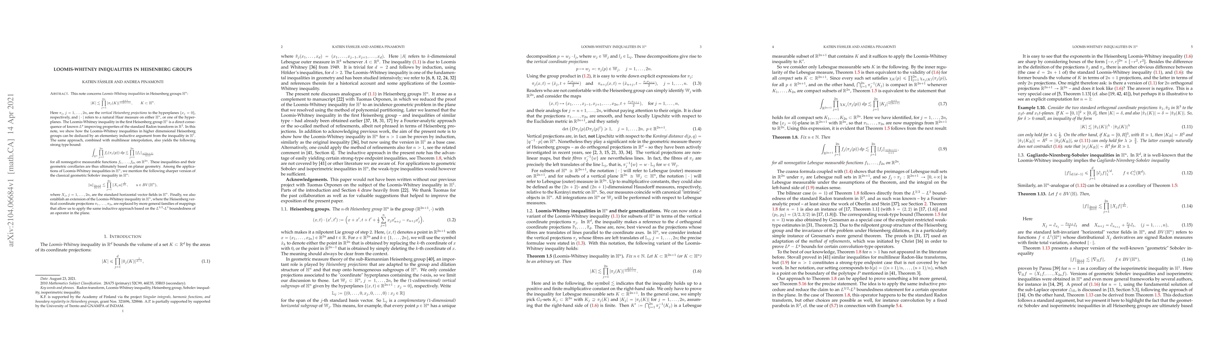 This note concerns Loomis-Whitney inequalities in Heisenberg groups $\mathbb{H}^n$: $$|K| \lesssim \prod_{j=1}^{2n}|\pi_j(K)|^{\frac{n+1}{n(2n+1)}}, \qquad K \subset \mathbb{H}^n.$$ Here $\pi_{j}$, $j=1,\ldots,2n$, are the vertical Heisenberg projections to the hyperplanes $\{x_j=0\}$, respectively, and $|\cdot|$ refers to a natural Haar measure on either $\mathbb{H}^n$, or one of the hyperplanes. The Loomis-Whitney inequality in the first Heisenberg group $\mathbb{H}^1$ is a direct consequence of known $L^p$ improving properties of the standard Radon transform in $\mathbb{R}^2$. In this note, we show how the Loomis-Whitney inequalities in higher dimensional Heisenberg groups can be deduced by an elementary inductive argument from the inequality in $\mathbb{H}^1$. The same approach, combined with multilinear interpolation, also yields the following strong type bound: $$\int_{\mathbb{H}^n} \prod_{j=1}^{2n} f_j(\pi_j(p))\;dp\lesssim \prod_{j=1}^{2n} \|f_j\|_{\frac{n(2n+1)}{n+1}}$$ for all nonnegative measurable functions $f_1,\ldots,f_{2n}$ on $\mathbb{R}^{2n}$. These inequalities and their geometric corollaries are thus ultimately based on planar geometry. Among the applications of Loomis-Whitney inequalities in $\mathbb{H}^n$, we mention the following sharper version of the classical geometric Sobolev inequality in $\mathbb{H}^n$: $$\|u\|_{\frac{2n+2}{2n+1}} \lesssim \prod_{j=1}^{2n}\|X_ju\|^{\frac{1}{2n}}, \qquad u \in BV(\mathbb{H}^n),$$ where $X_j$, $j=1,\ldots,2n$, are the standard horizontal vector fields in $\mathbb{H}^n$.