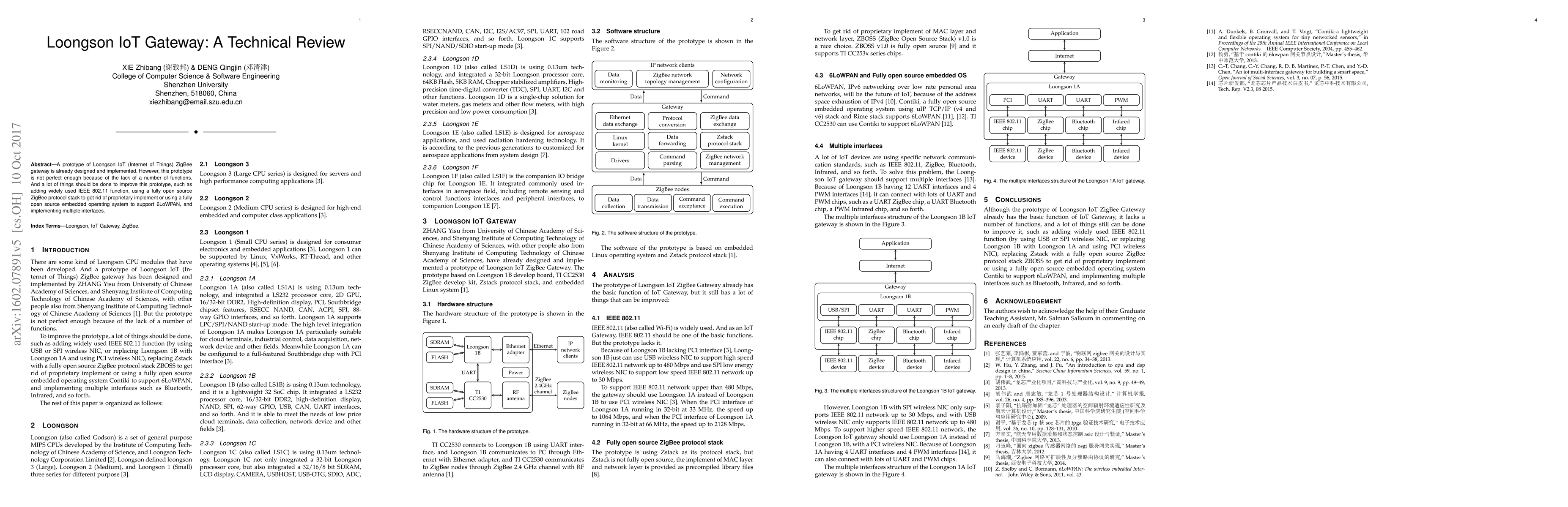 A prototype of Loongson IoT (Internet of Things) ZigBee gateway is already designed and implemented. However, this prototype is not perfect enough because of the lack of a number of functions. And a lot of things should be done to improve this prototype, such as adding widely used IEEE 802.11 function, using a fully open source ZigBee protocol stack to get rid of proprietary implement or using a fully open source embedded operating system to support 6LoWPAN, and implementing multiple interfaces.