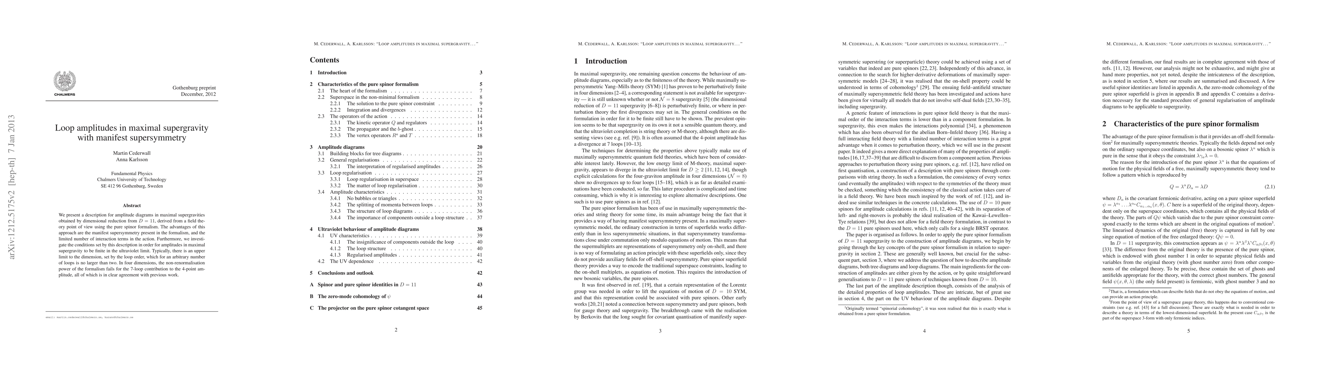 We present a description for amplitude diagrams in maximal supergravities obtained by dimensional reduction from D=11, derived from a field theory point of view using the pure spinor formalism. The advantages of this approach are the manifest supersymmetry present in the formalism, and the limited number of interaction terms in the action. Furthermore, we investigate the conditions set by this description in order for amplitudes in maximal supergravity to be finite in the ultraviolet limit. Typically, there is an upper limit to the dimension, set by the loop order, which for an arbitrary number of loops is no larger than two. In four dimensions, the non-renormalisation power of the formalism fails for the 7-loop contribution to the 4-point amplitude, all of which is in clear agreement with previous work.