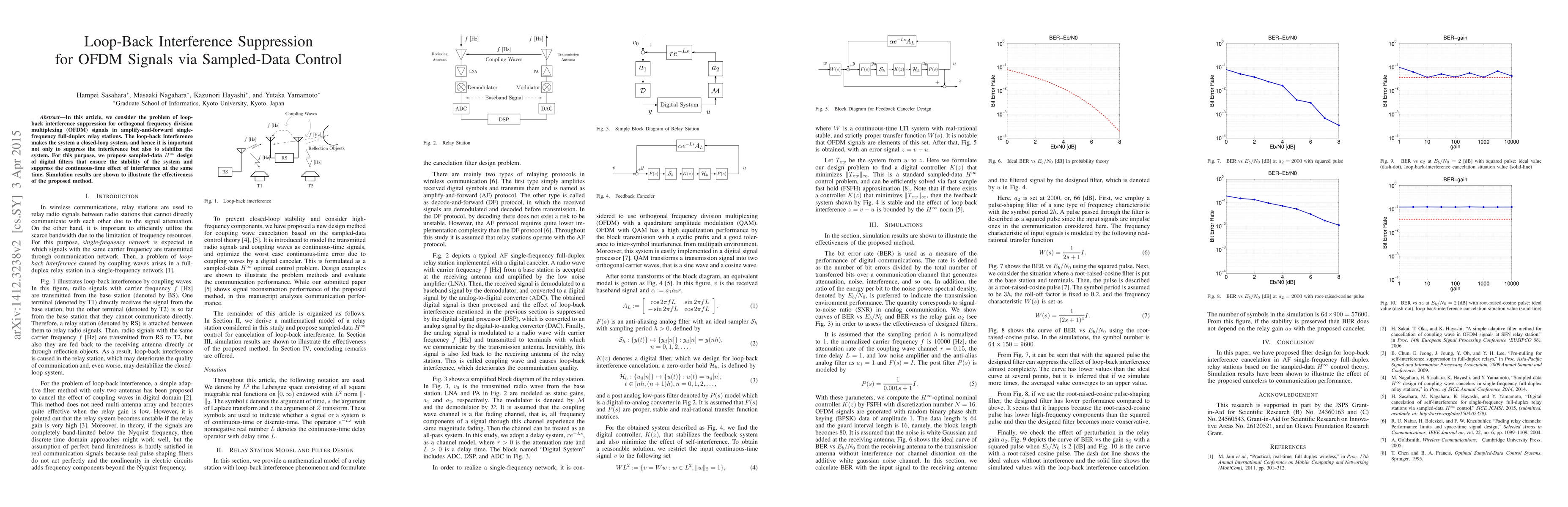 This paper proposes an $H^{\infty}$ sampled-data control approach to suppress loop-back interference in OFDM signals for full-duplex relay stations, ensuring system stability and mitigating interference effects. Simulation results demonstrate the effectiveness of the proposed digital filter design.