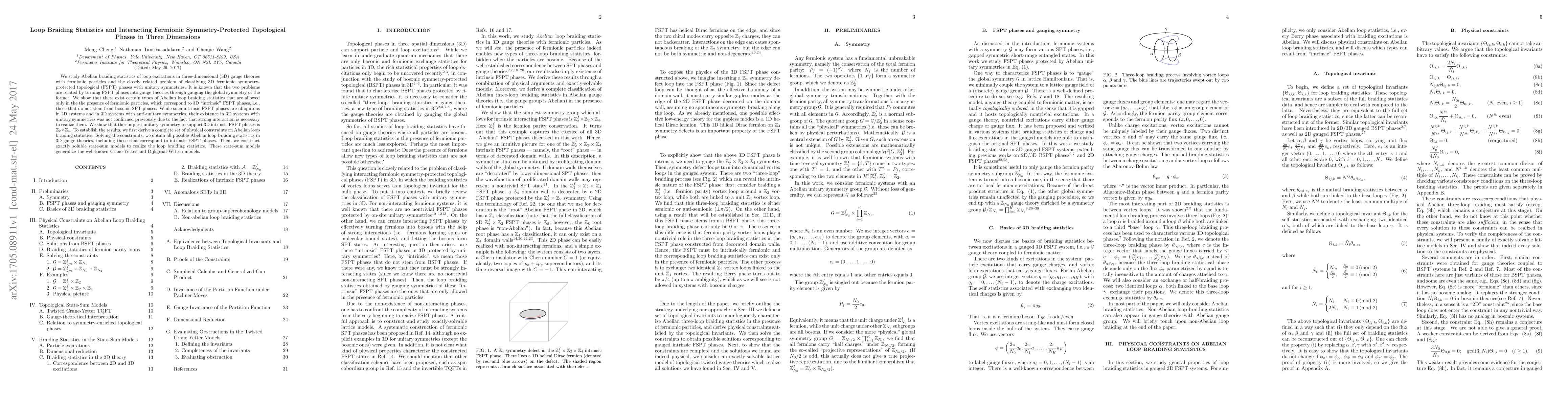 This paper investigates Abelian loop braiding statistics in 3D gauge theories with fermionic particles, revealing new types of Abelian loop braiding exclusive to systems with such particles. It classifies 3D fermionic symmetry-protected topological phases with unitary symmetries, confirming the existence of intrinsic FSPT phases in 3D with the $\mathbb{Z}_2\times\mathbb{Z}_4$ symmetry, and constructs state-sum models to realize these phases.