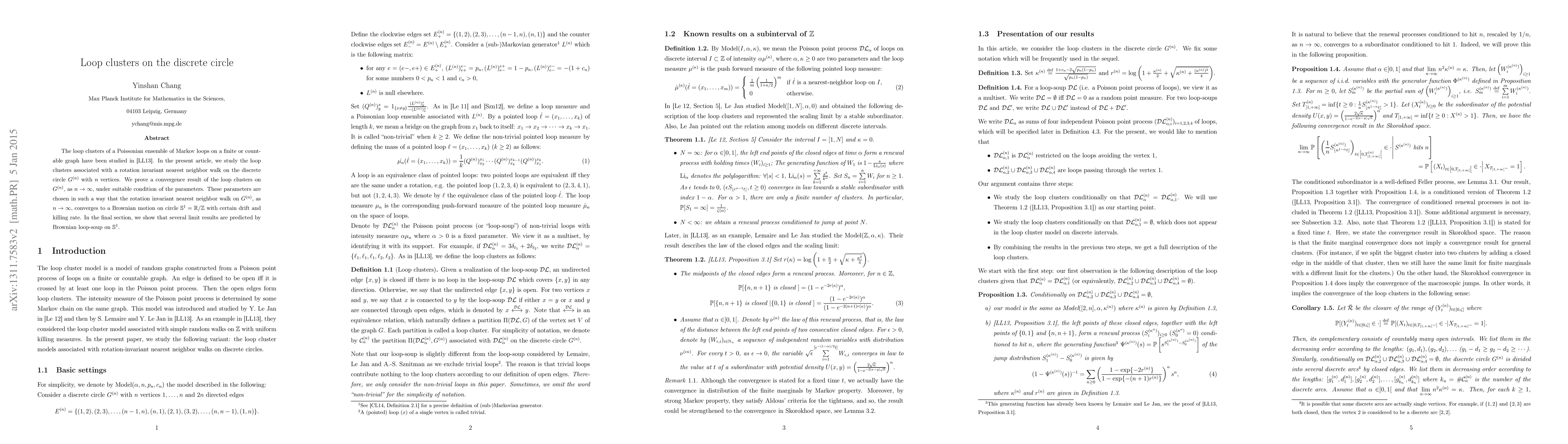 This paper studies loop clusters on a discrete circle under suitable conditions, proving convergence to Brownian motion with drift and killing rate as the number of vertices approaches infinity. The findings have implications for understanding limit results from Brownian loop-soup on the circle.