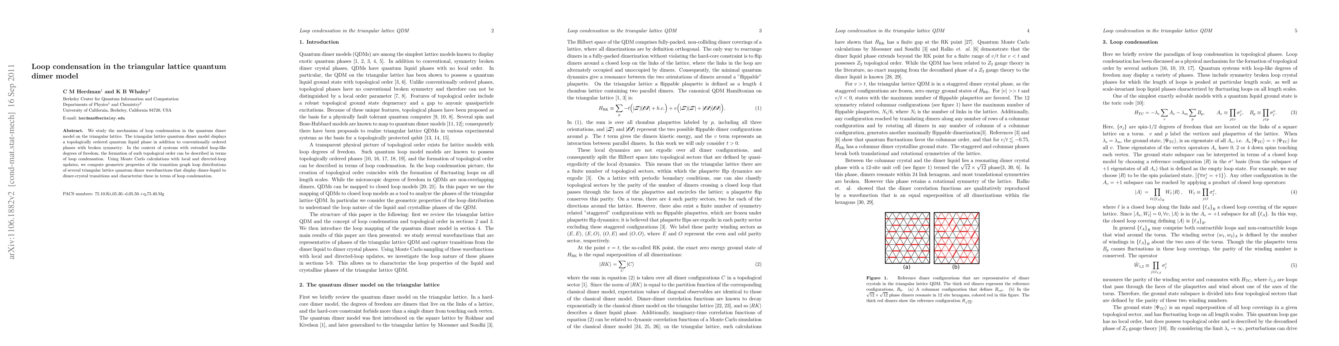 This research investigates the loop condensation mechanism in the triangular lattice quantum dimer model, demonstrating topologically ordered quantum liquid phases. Using Monte Carlo simulations, it computes loop distribution properties and characterizes transitions between dimer-liquid and dimer-crystal phases via loop condensation.