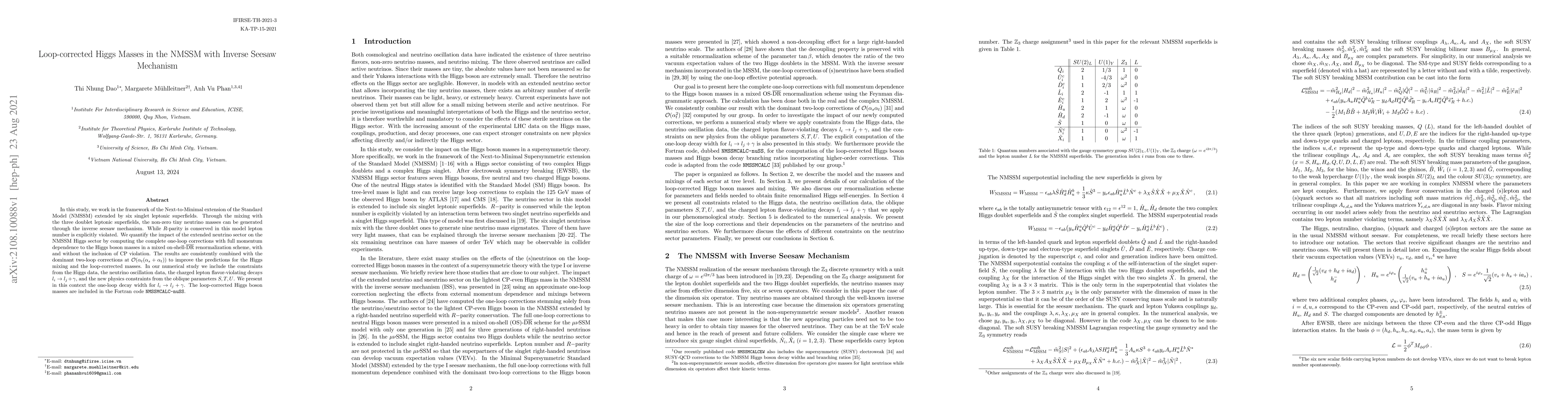 This paper investigates the Next-to-Minimal Supersymmetric Standard Model (NMSSM) extended with an inverse seesaw mechanism for neutrino masses, calculating one-loop corrections to Higgs masses. It combines these with two-loop corrections and considers constraints from Higgs data, neutrino oscillations, and flavor-violating decays.