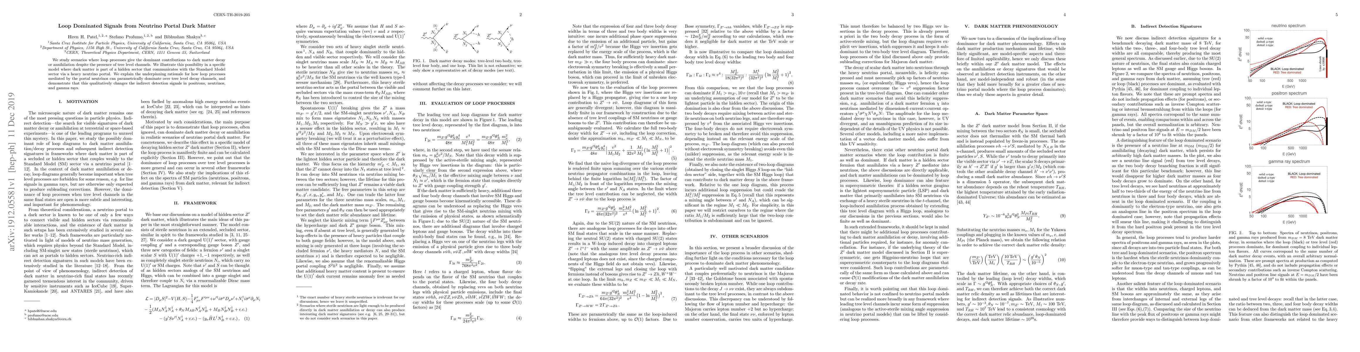 This paper explores scenarios where loop processes dominate dark matter decay or annihilation in a neutrino portal model, showing how these processes can significantly alter indirect detection signals in positrons, neutrinos, and gamma rays compared to tree level processes. The study highlights the unique implications of such loop-dominated signals for dark matter detection.