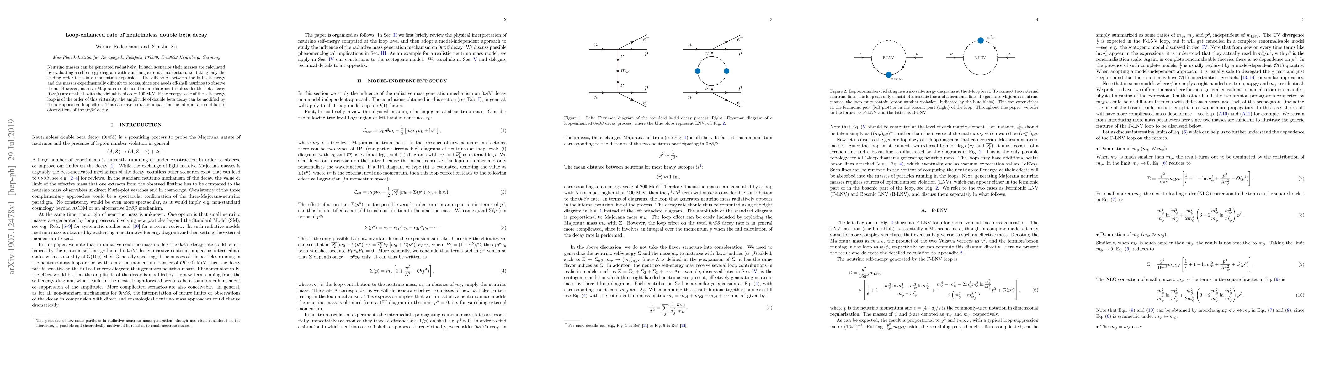 This paper explores how radiatively generated neutrino masses, through loop-enhanced mechanisms, can significantly modify the amplitude of neutrinoless double beta decay ($0\nu\beta\beta$), potentially impacting the interpretation of future experimental observations. The study highlights the importance of considering loop effects at energy scales comparable to the virtuality of off-shell neutrinos.