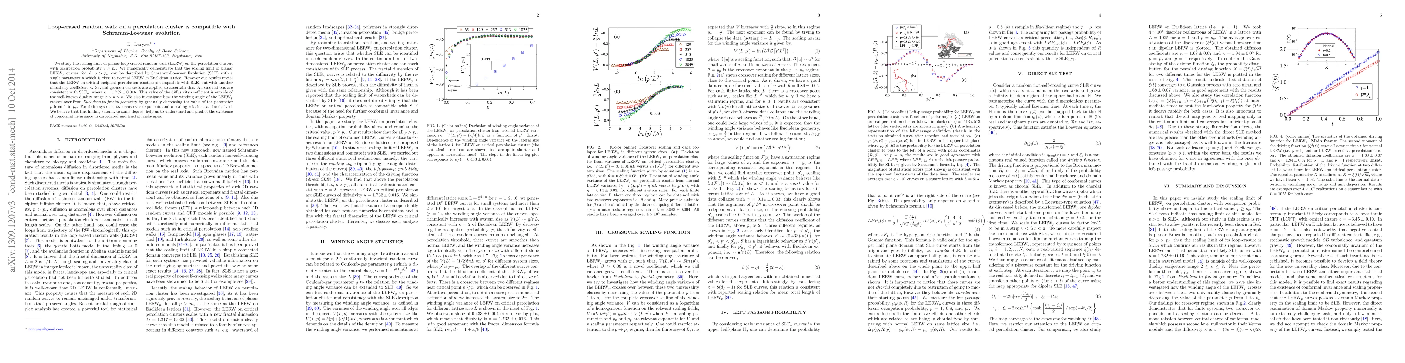 This paper demonstrates that loop erased random walk (LERW) on percolation clusters scales to Schramm-Loewner Evolution (SLE) with a unique diffusivity coefficient $\kappa=1.732\pm0.016$, outside the conventional duality range. This finding suggests a novel understanding of conformal invariance in disordered systems.