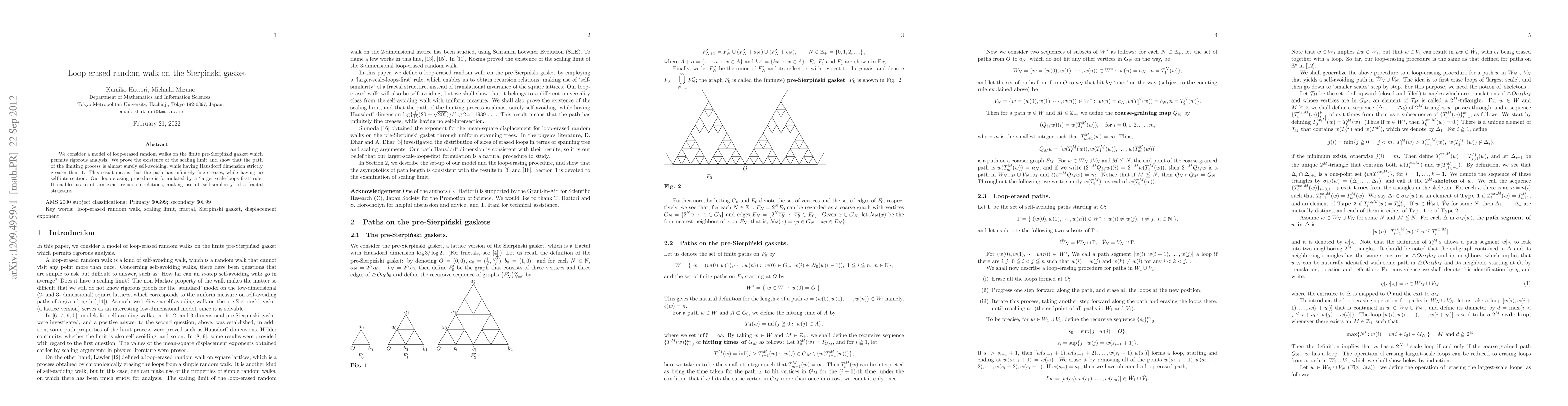 This paper studies loop-erased random walks on a finite pre-Sierpinski gasket, proving the existence of a scaling limit with a self-avoiding path of Hausdorff dimension greater than 1. The loop-erasing method prioritizes larger loops first, allowing for exact recursion relations and self-similarity analysis.