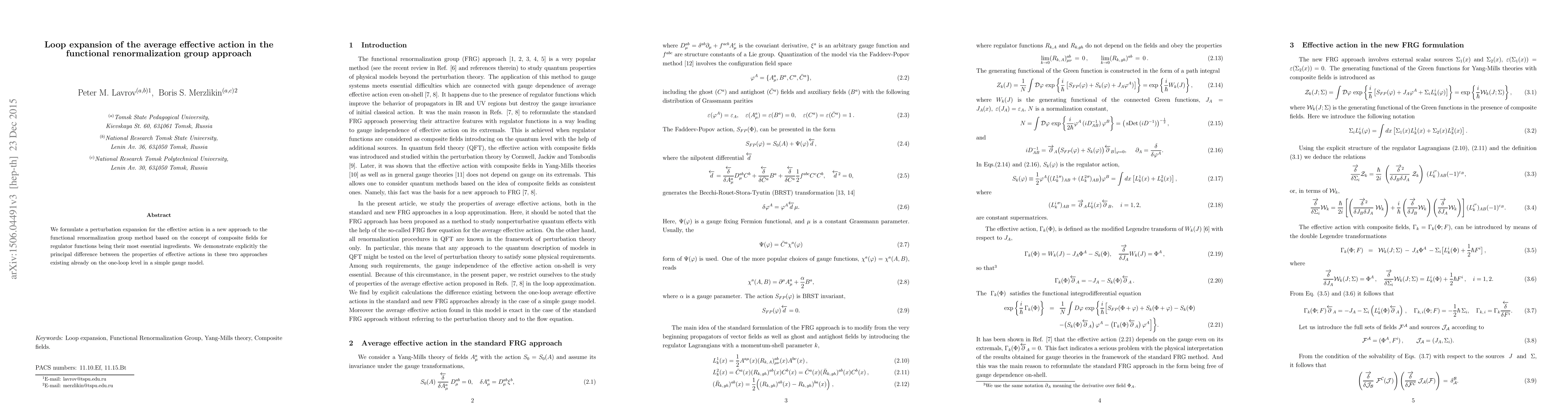 We formulate a perturbation expansion for the effective action in a new approach to the functional renormalization group method based on the concept of composite fields for regulator functions being their most essential ingredients. We demonstrate explicitly the principal difference between the properties of effective actions in these two approaches existing already on the one-loop level in a simple gauge model.