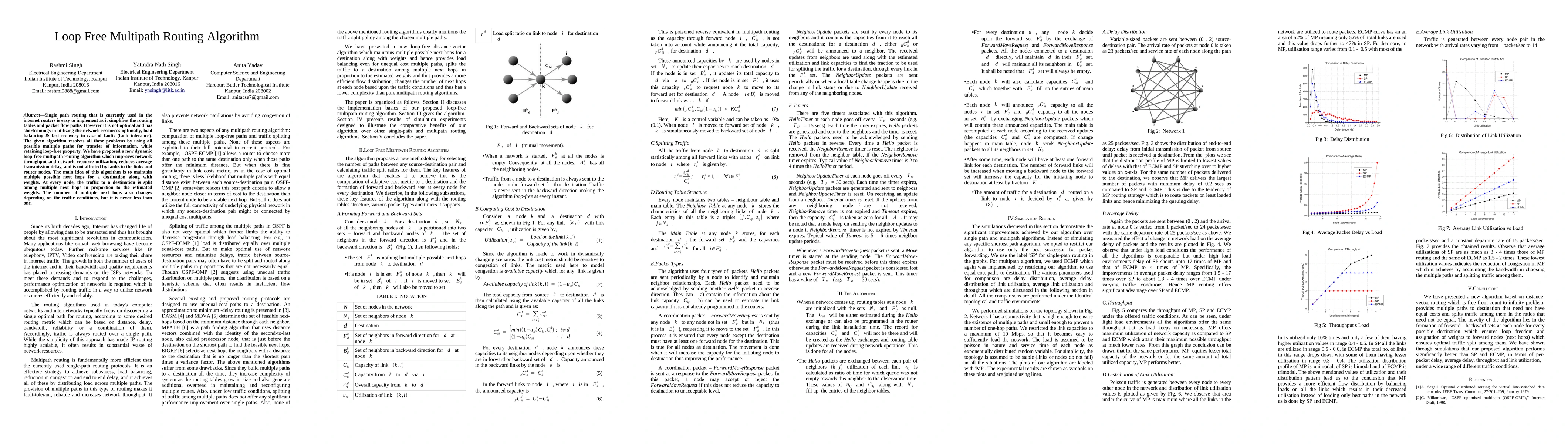 A new loop-free multipath routing algorithm is proposed to improve network throughput and resource utilization, while reducing transmission delay and enhancing fault tolerance.