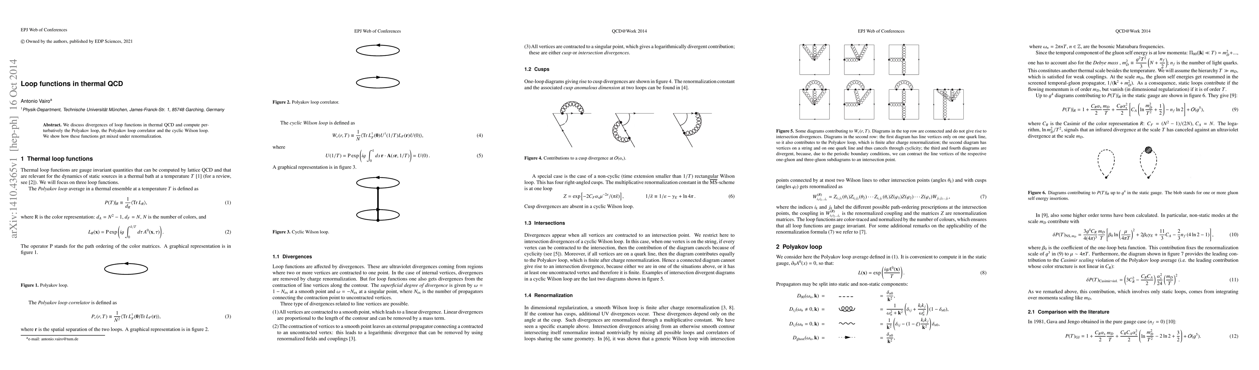 Summary: This paper investigates divergences of loop functions in thermal Quantum Chromodynamics (QCD), focusing on perturbative calculations of the Polyakov loop, its correlator, and the cyclic Wilson loop, while detailing how these functions mix under renormalization processes.