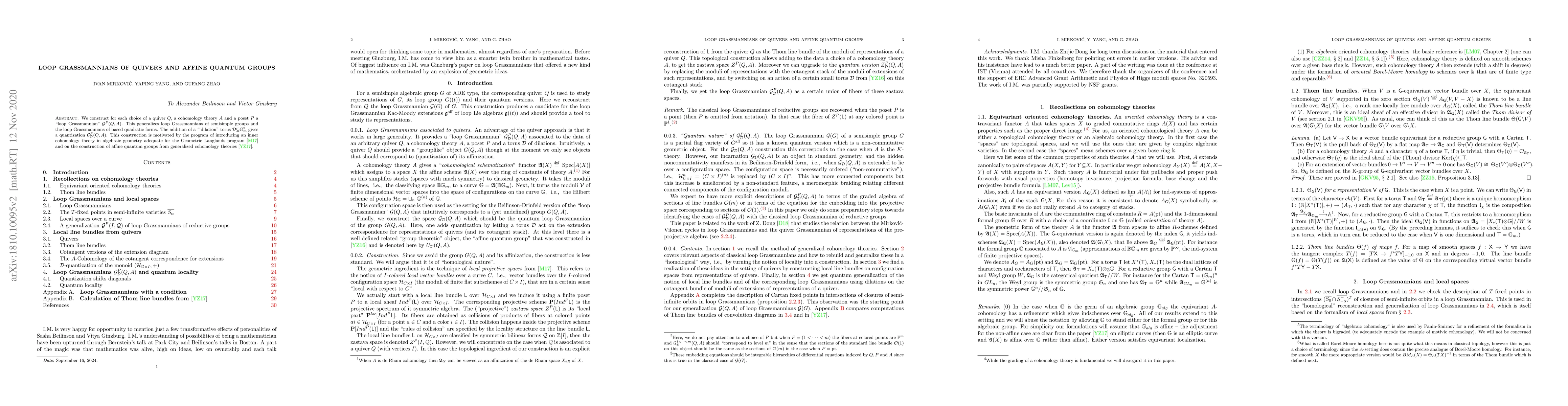We construct for each choice of a quiver $Q$, a cohomology theory $A$ and a poset $P$ a "loop Grassmannian" $\mathcal{G}^P(Q,A)$. This generalizes loop Grassmannians of semisimple groups and the loop Grassmannians of based quadratic forms. The addition of a dilation torus $\mathcal{D}\subset\mathbb{G}_m^2$ gives a quantization $\mathcal{G}^P_\mathcal{D}(Q,A)$. The construction is motivated by the program of introducing an inner cohomology theory in algebraic geometry adequate for the Geometric Langlands program ['Some extensions of the notion of loop Grassmannians', Rad Hrvat. Akad. Znan. Umjet. Mat. Znan., the Mardesic issue. No. 532, (2017) 53--74.] and on the construction of affine quantum groups from generalized cohomologies ArXiv: 1708.01418.