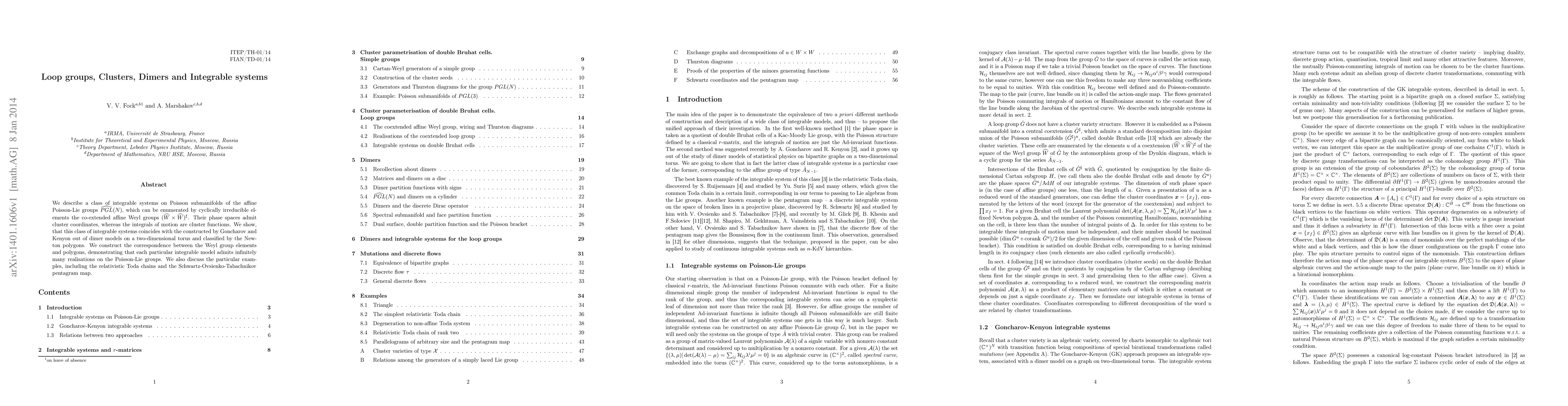 We describe a class of integrable systems on Poisson submanifolds of the affine Poisson-Lie groups $\widehat{PGL}(N)$, which can be enumerated by cyclically irreducible elements the co-extended affine Weyl groups $(\widehat{W}\times \widehat{W})^\sharp$. Their phase spaces admit cluster coordinates, whereas the integrals of motion are cluster functions. We show, that this class of integrable systems coincides with the constructed by Goncharov and Kenyon out of dimer models on a two-dimensional torus and classified by the Newton polygons. We construct the correspondence between the Weyl group elements and polygons, demonstrating that each particular integrable model admits infinitely many realisations on the Poisson-Lie groups. We also discuss the particular examples, including the relativistic Toda chains and the Schwartz-Ovsienko-Tabachnikov pentagram map.