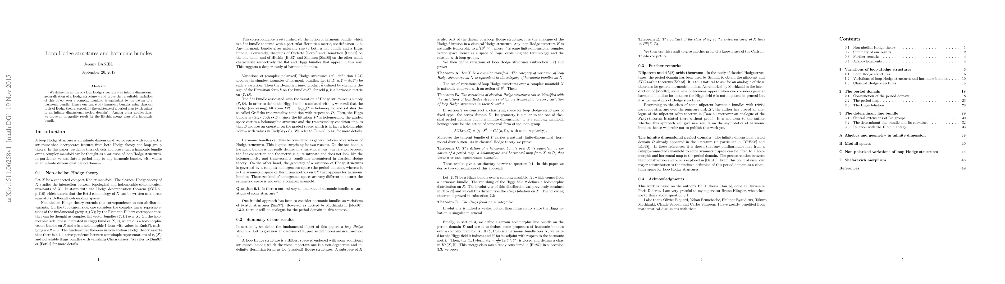 We define the notion of a loop Hodge structure -- an infinite dimensional generalization of a Hodge structure -- and prove that a suitable variation of this object over a complex manifold is equivalent to the datum of a harmonic bundle. Hence one can study harmonic bundles using classical tools of Hodge theory, especially the existence of a period map (with values in an infinite dimensional period domain). Among other applications, we prove an integrality result for the Hitchin energy class of a harmonic bundle.