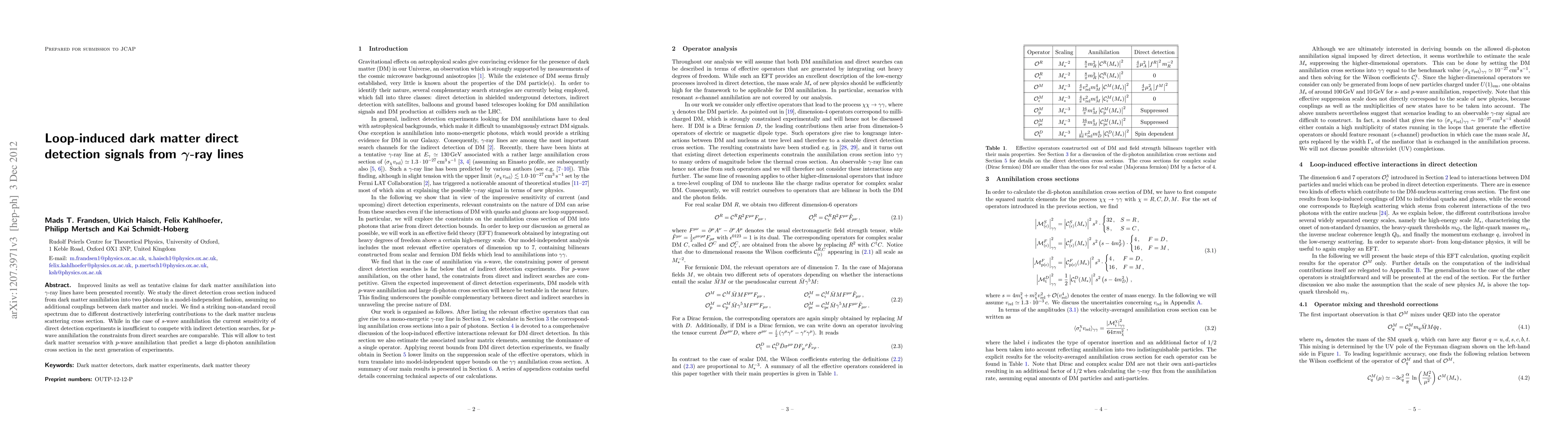 Improved limits as well as tentative claims for dark matter annihilation into gamma-ray lines have been presented recently. We study the direct detection cross section induced from dark matter annihilation into two photons in a model-independent fashion, assuming no additional couplings between dark matter and nuclei. We find a striking non-standard recoil spectrum due to different destructively interfering contributions to the dark matter nucleus scattering cross section. While in the case of s-wave annihilation the current sensitivity of direct detection experiments is insufficient to compete with indirect detection searches, for p-wave annihilation the constraints from direct searches are comparable. This will allow to test dark matter scenarios with p-wave annihilation that predict a large di-photon annihilation cross section in the next generation of experiments.