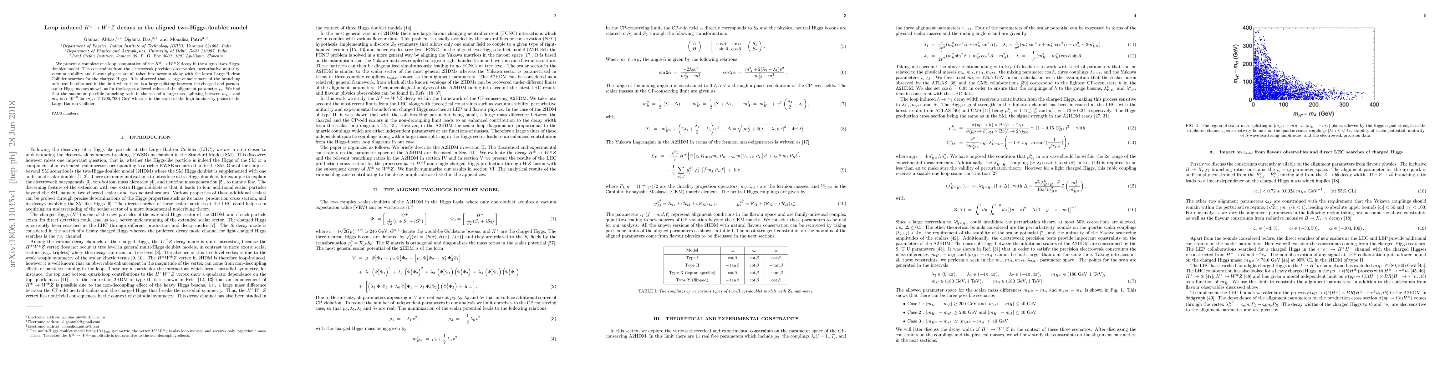 This paper computes the one-loop decay $H^\pm \rightarrow W^\pm Z$ in the aligned two-Higgs-doublet model, considering various constraints and LHC searches. It finds significant branching ratio enhancements for large mass splitting between $m_{H^\pm}$ and $m_A$, reaching up to $\approx 10^{-3}$ in the 200-700 GeV range, potentially observable in the future high-luminosity phase of the LHC.