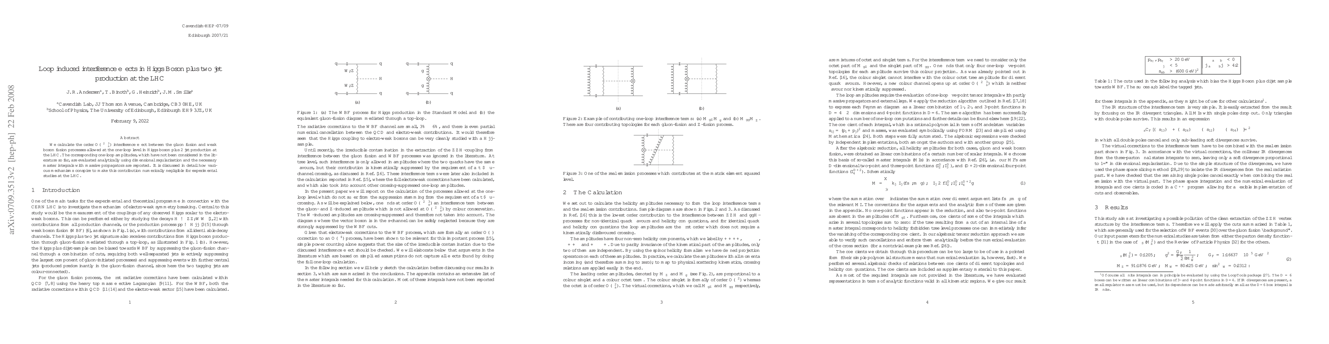 This paper calculates the one-loop interference effects at the O(α²α_s³) level for Higgs boson plus two jet production via gluon fusion and weak boson fusion at the LHC. The study evaluates the previously unreported one-loop amplitudes analytically, finding that these contributions are numerically negligible for experimental observations at the LHC.