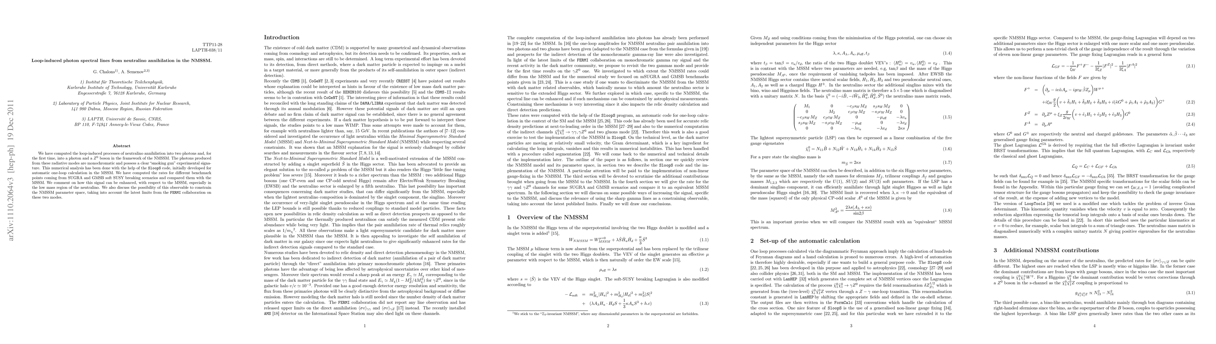 This paper computes loop-induced neutralino annihilation processes in the NMSSM, producing monochromatic photons and a Z boson, providing a distinct experimental signature. The analysis, performed using the SloopS code, compares these rates with the MSSM and discusses potential enhancements and parameter space constraints.