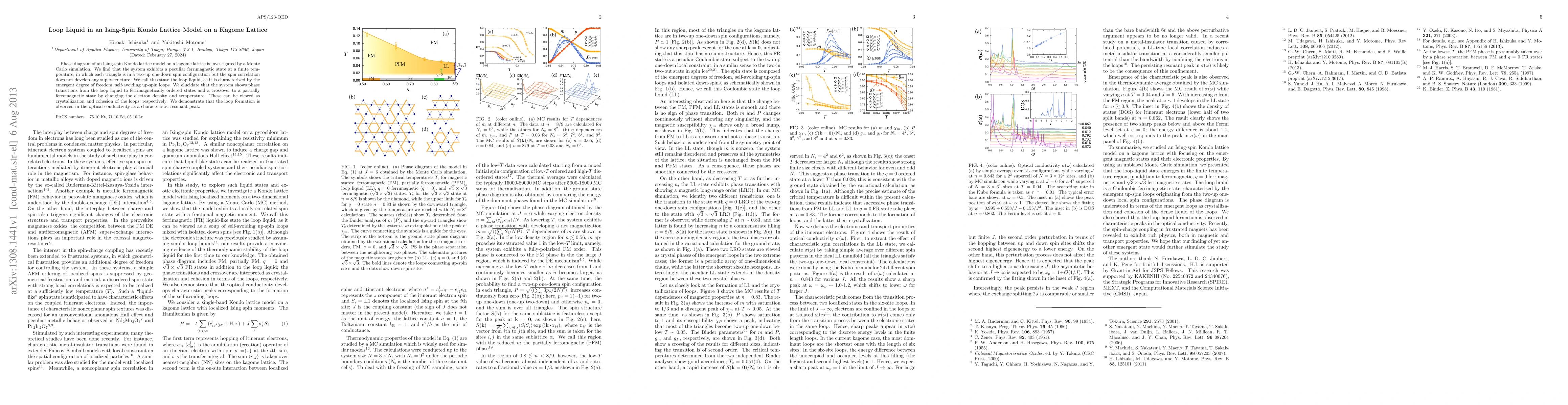 The study investigates the phase diagram of an Ising-spin Kondo lattice on a kagome lattice using Monte Carlo simulations, revealing a unique ferrimagnetic loop liquid state characterized by self-avoiding up-spin loops. The system transitions between loop liquid, ferrimagnetic, and partially ferromagnetic states with changes in electron density and temperature.