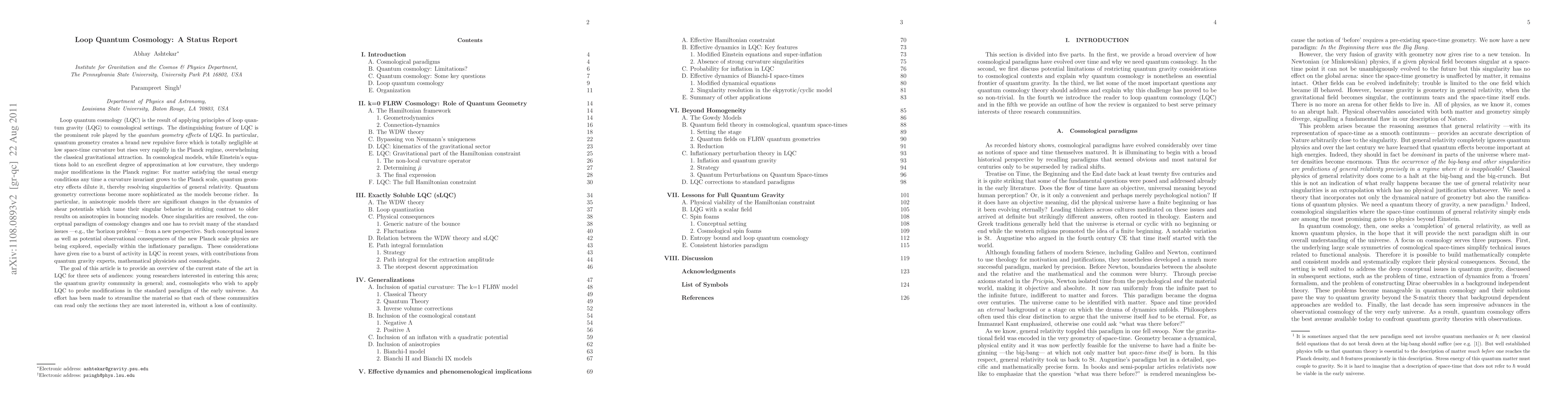 This paper offers an accessible overview of loop quantum cosmology tailored for young researchers, the quantum gravity community, and cosmologists, with sections designed to allow targeted reading without loss of continuity. It aims to explore potential modifications to the early universe's standard paradigm through loop quantum cosmology.