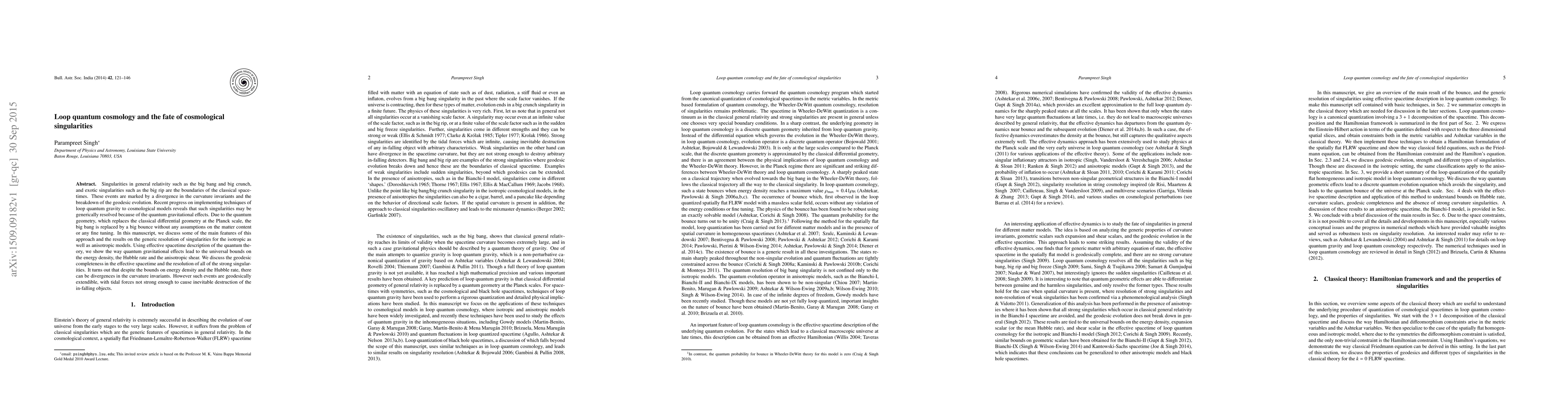 Loop quantum cosmology suggests that singularities in the universe, such as the Big Bang, may not exist due to quantum gravitational effects, instead leading to a 'big bounce' scenario.