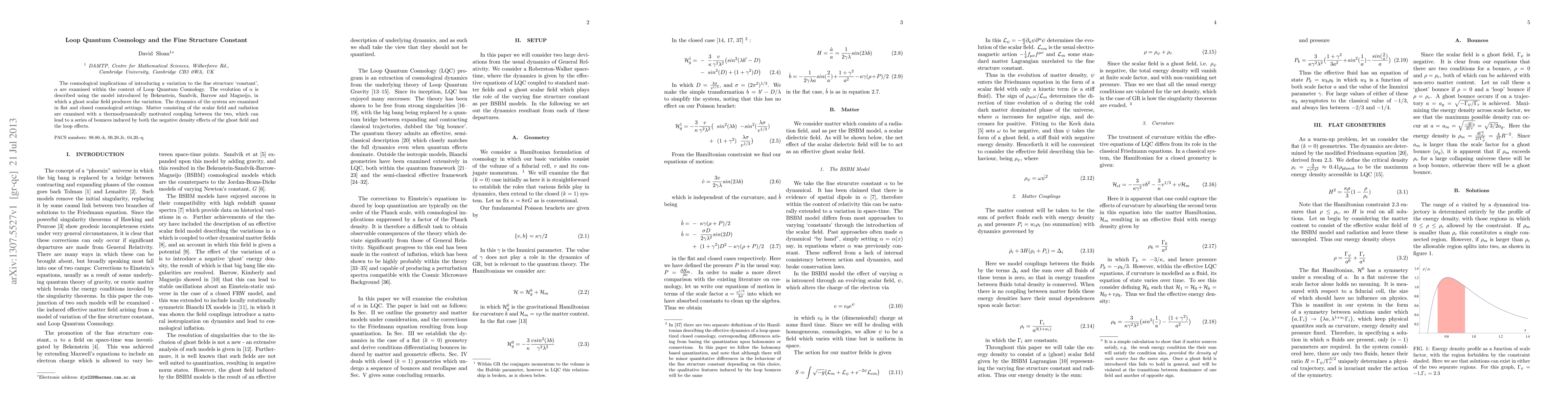 The cosmological implications of introducing a variation to the fine structure `constant', \alpha are examined within the context of Loop Quantum Cosmology. The evolution of \alpha is described using the model introduced by Bekenstein, Sandvik, Barrow and Magueijo, in which a ghost scalar field produces the variation. The dynamics of the system are examined in flat and closed cosmological settings. Matter consisting of the scalar field and radiation are examined with a thermodynamically motivated coupling between the two, which can lead to a series of bounces induced by both the negative density effects of the ghost field and the loop effects.