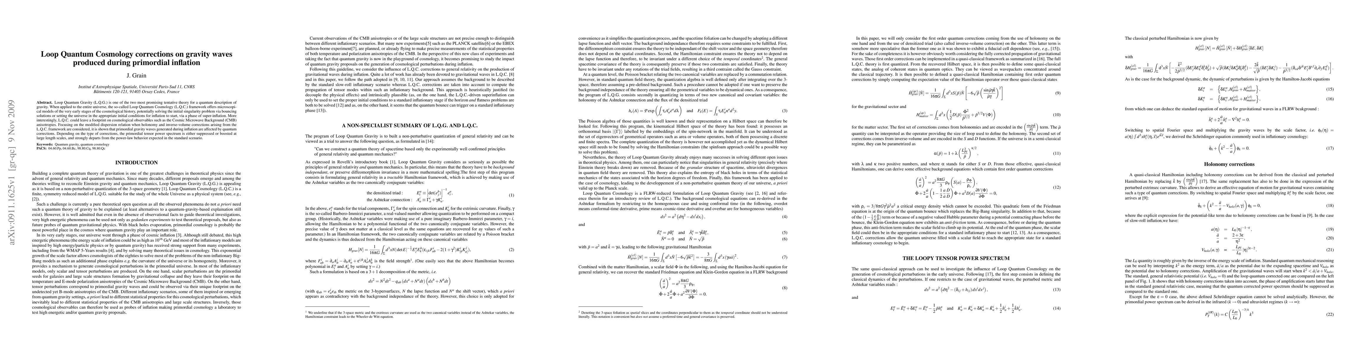 Loop Quantum Gravity (L.Q.G.) is one of the two most promising tentative theory for a quantum description of gravity. When applied to the entire universe, the so-called Loop Quantum Cosmology (L.Q.C.) framework offers microscopical models of the very early stages of the cosmological history, potentially solving the initial singularity problem via bouncing solutions or setting the universe in the appropriate initial conditions for inflation to start, via a phase of super-inflation. More interestingly, L.Q.C. could leave a footprint on cosmological observables such as the Cosmic Microwave Background (CMB) anisotropies. Focusing on the modified dispersion relation when holonomy and inverse-volume corrections arising from the L.Q.C. framework are considered, it is shown that primordial gravity waves generated during inflation are affected by quantum corrections. Depending on the type of corrections, the primordial tensor power spectrum is either suppressed or boosted at large length scales, and strongly departs from the power-law behavior expected in the standard scenario.