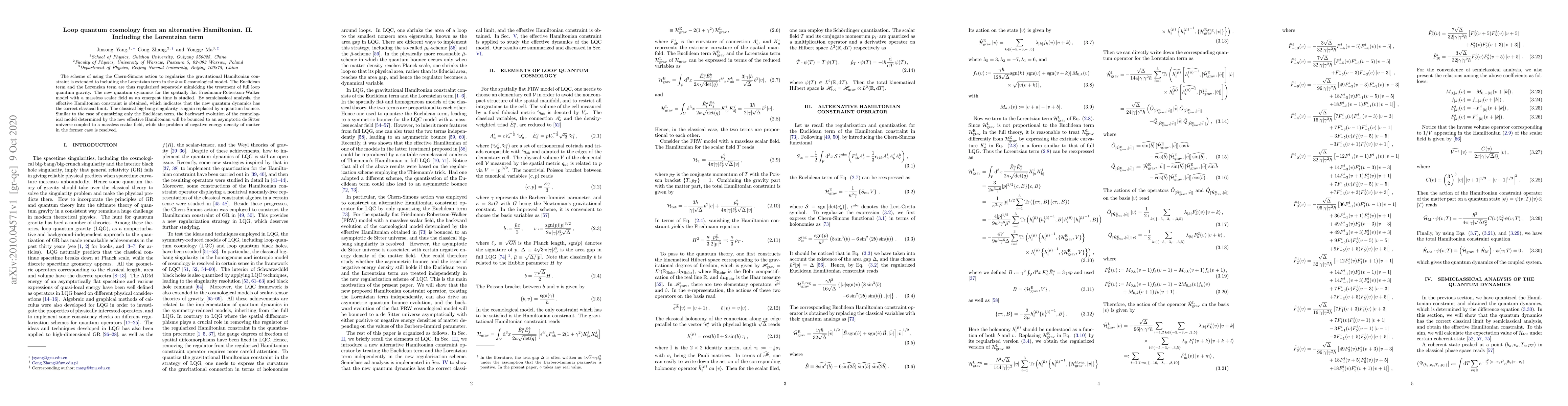 This paper extends the regularization of the gravitational Hamiltonian constraint using the Chern-Simons action to include the Lorentzian term in a $k=0$ cosmological model. The study reveals a new quantum dynamics for the Friedmann-Robertson-Walker model, replacing the classical big-bang singularity with a quantum bounce and resolving issues of negative energy density.