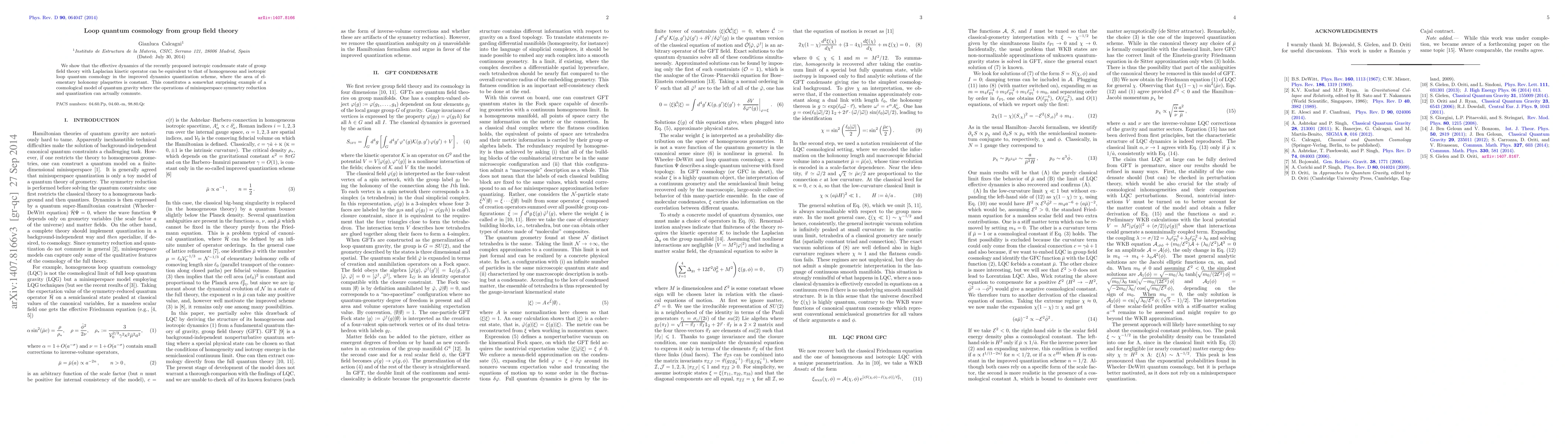 We show that the effective dynamics of the recently proposed isotropic condensate state of group field theory with Laplacian kinetic operator can be equivalent to that of homogeneous and isotropic loop quantum cosmology in the improved dynamics quantization scheme, where the area of elementary holonomy plaquettes is constant. This constitutes a somewhat surprising example of a cosmological model of quantum gravity where the operations of minisuperspace symmetry reduction and quantization can actually commute.