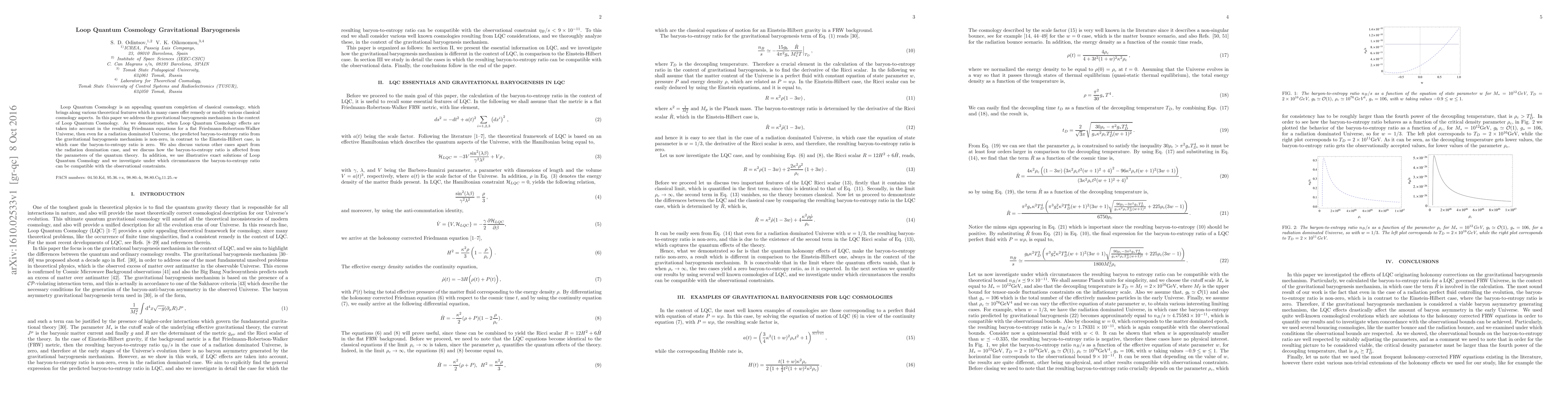 This paper explores gravitational baryogenesis within the framework of Loop Quantum Cosmology, showing that its effects modify the baryon-to-entropy ratio compared to classical cosmology, leading to a non-zero ratio even in a radiation-dominated universe, unlike the Einstein-Hilbert case. It also investigates various scenarios and parameters to determine compatibility with observational constraints.