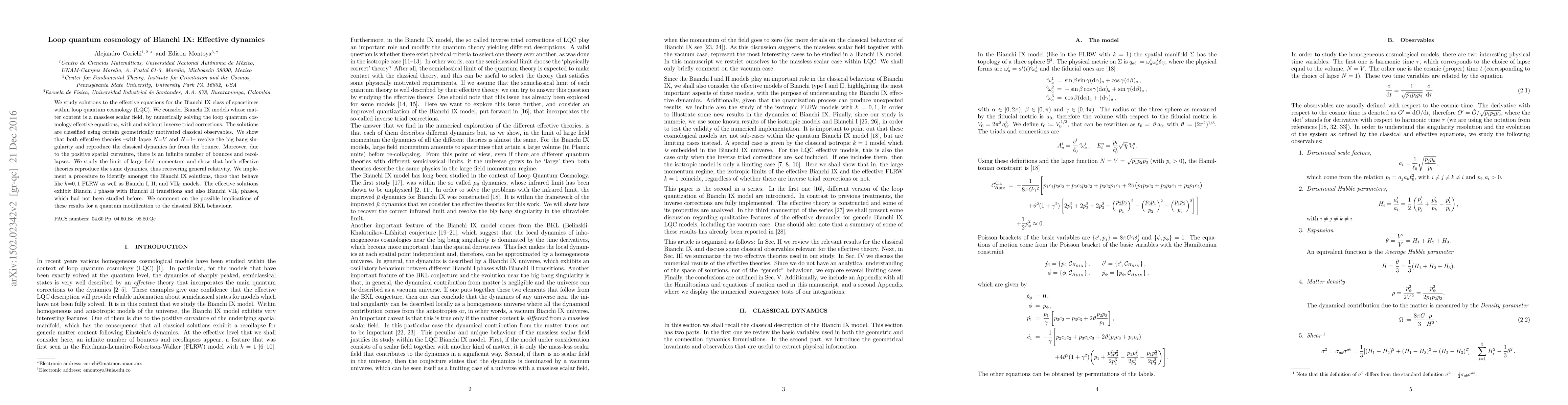 This research numerically investigates the effective dynamics of Bianchi IX spacetimes in Loop Quantum Cosmology, showing that both with and without inverse triad corrections, the models resolve the big bang singularity and recover general relativity at large volumes. The study identifies diverse Bianchi phases in the solutions, including previously unexplored Bianchi VII_0 phases, suggesting potential quantum modifications to classical BKL behavior.