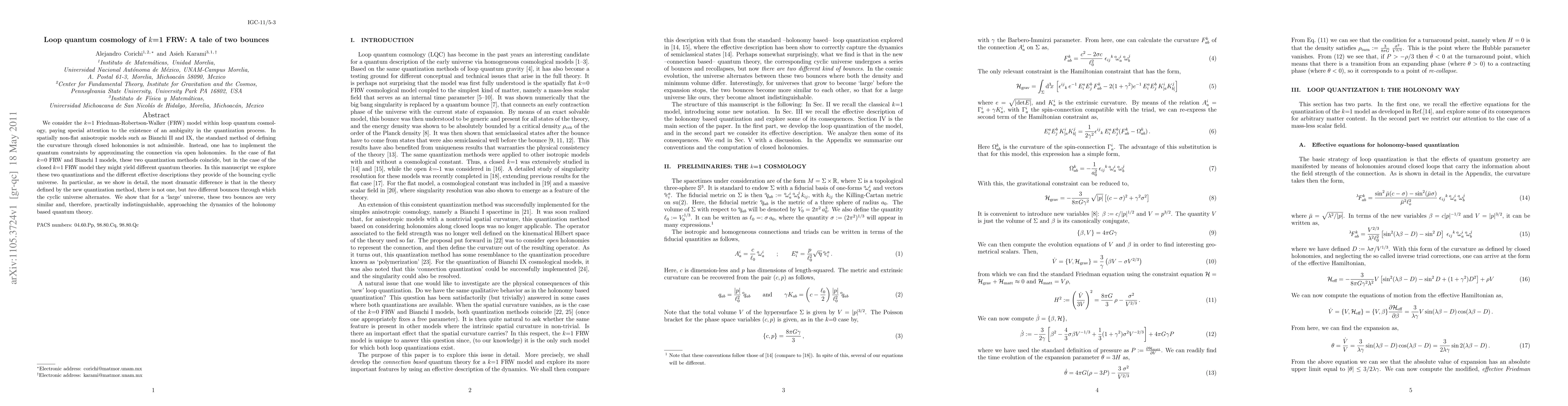 The research employs loop quantum cosmology (LQC) to analyze the k=1 FRW model, focusing on an ambiguity in the quantization process. It compares two quantization methods: one using closed holonomies and another using open holonomies to define connections, especially relevant for anisotropic models with non-trivial spatial curvature.
