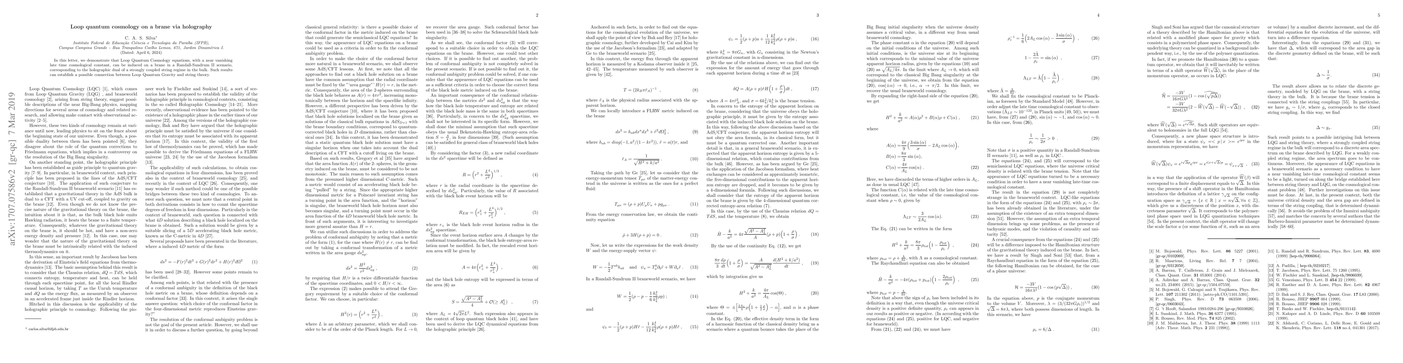 In this letter, we demonstrate that Loop Quantum Cosmology equations, with a near vanishing late time cosmological constant, can be induced on a brane in a Randall-Sundrum II scenario, corresponding to the holographic dual of a strongly coupled string regime in the bulk. Such results can establish a possible connection between Loop Quantum Gravity and string theory.