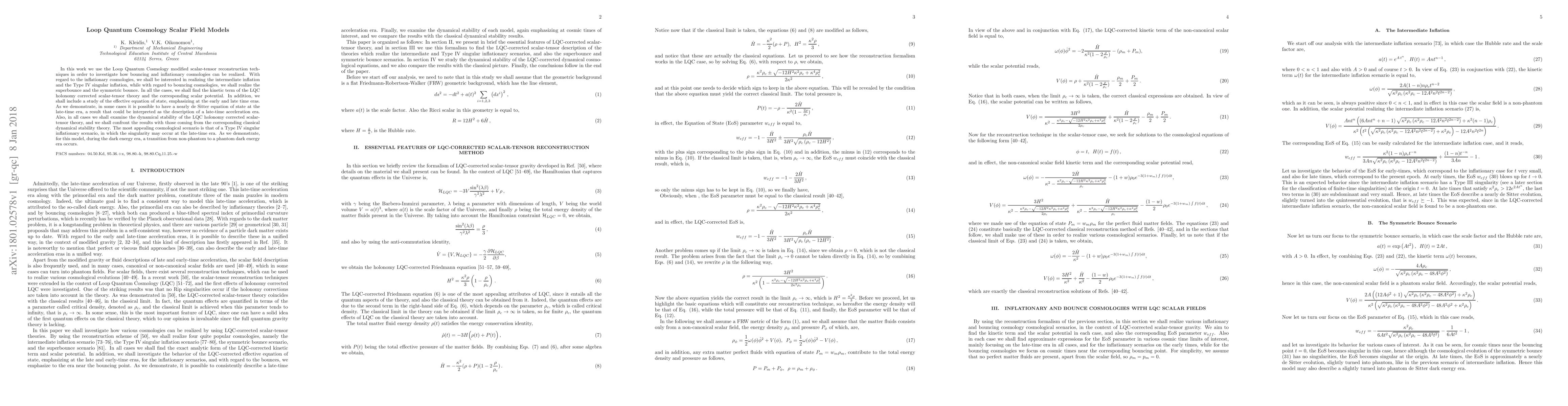 In this work we use the Loop Quantum Cosmology modified scalar-tensor reconstruction techniques in order to investigate how bouncing and inflationary cosmologies can be realized. With regard to the inflationary cosmologies, we shall be interested in realizing the intermediate inflation and the Type IV singular inflation, while with regard to bouncing cosmologies, we shall realize the superbounce and the symmetric bounce. In all the cases, we shall find the kinetic term of the LQC holonomy corrected scalar-tensor theory and the corresponding scalar potential. In addition, we shall include a study of the effective equation of state, emphasizing at the early and late time eras. As we demonstrate, in some cases it is possible to have a nearly de Sitter equation of state at the late-time era, a result that could be interpreted as the description of a late-time acceleration era. Also, in all cases we shall examine the dynamical stability of the LQC holonomy corrected scalar-tensor theory, and we shall confront the results with those coming from the corresponding classical dynamical stability theory. The most appealing cosmological scenario is that of a Type IV singular inflationary scenario, in which the singularity may occur at the late-time era. As we demonstrate, for this model, during the dark energy era, a transition from non-phantom to a phantom dark energy era occurs.
