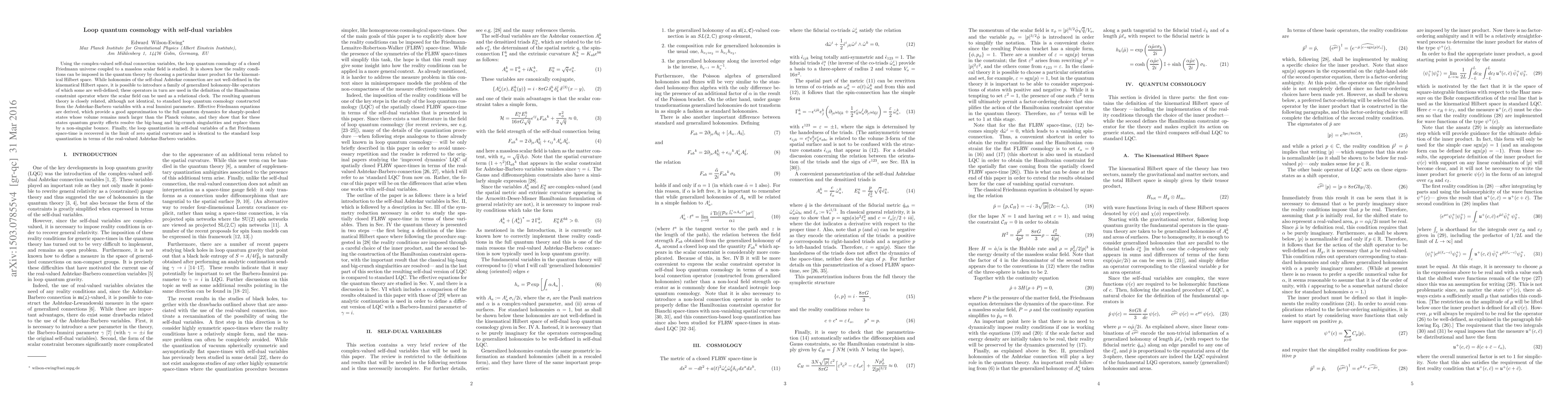 This work contributes to understanding loop quantum cosmology using self-dual variables, offering an alternative approach that may provide new insights into resolving singularities in cosmological models.