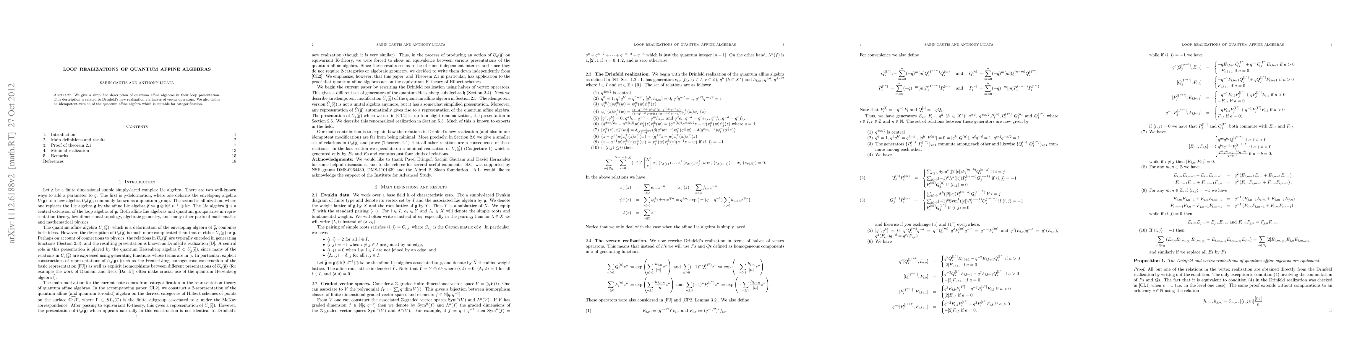 This paper presents a simplified loop realization of quantum affine algebras connected to Drinfeld's new realization using vertex operator halves, and introduces an idempotent version for categorification purposes.