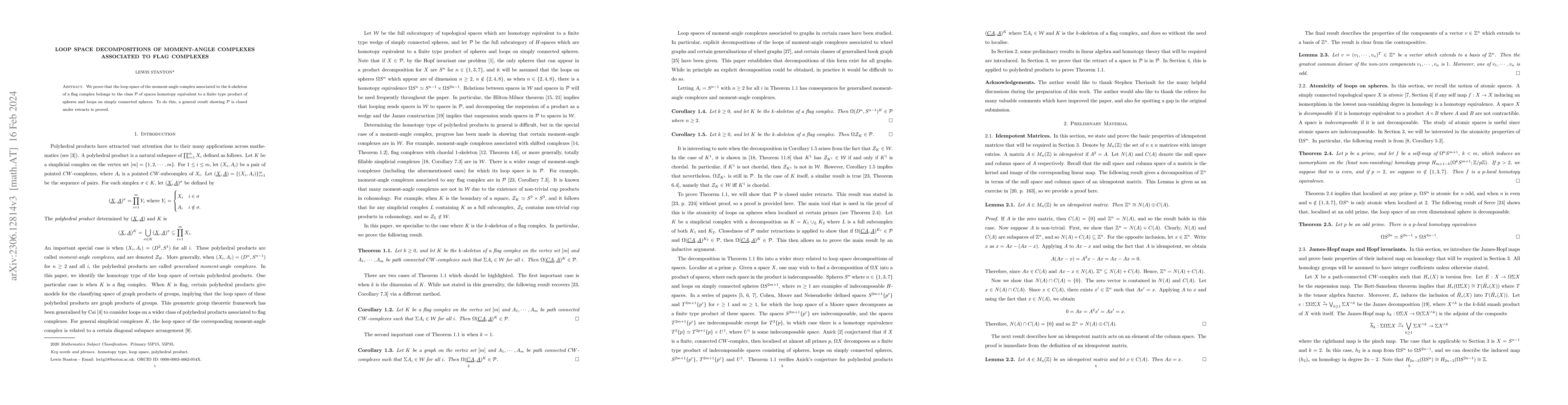 Summary: The paper proves that the loop space of moment-angle complexes linked to the $k$-skeleton of flag complexes belongs to a homotopy class $\mathcal{P}$, characterized by spaces equivalent to products of spheres and loops on simply connected spheres. It also establishes that $\mathcal{P}$ is closed under retracts.