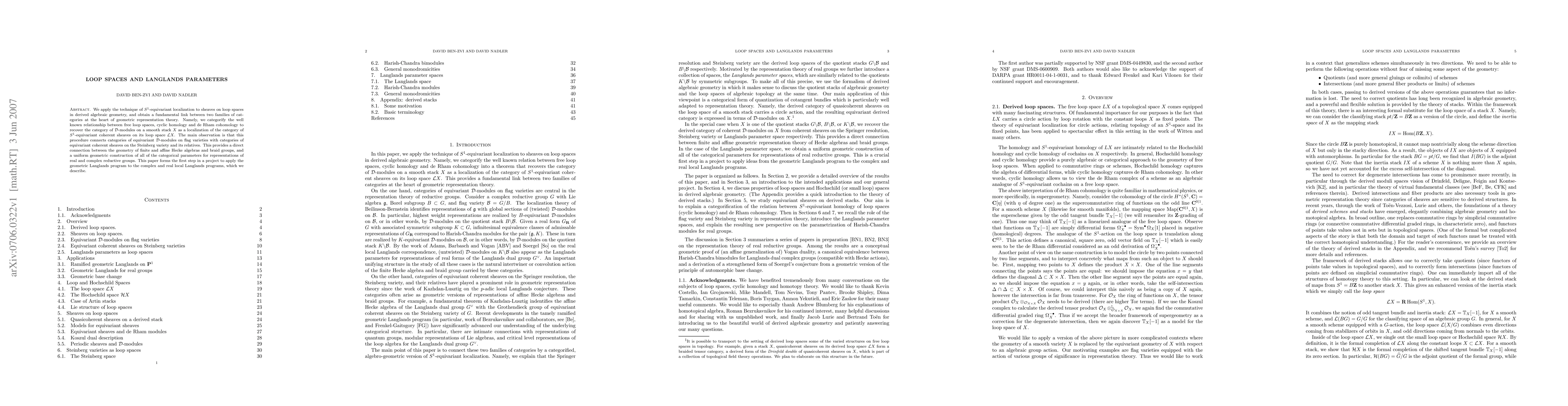 This paper uses S^1-equivariant localization to establish a link between loop spaces and Langlands parameters, categorifying the relationship between free loop spaces, cyclic homology, and de Rham cohomology, and providing a geometric connection to categorical parameters for representations of real and complex reductive groups.